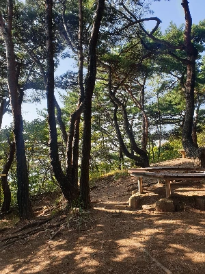 한참을 더 올라가다 보니 소나무 쉼터가 보였다. 나는 잠시 쉼터에 앉아 가지고 온 물을 꺼내 마시며 땀을 식혔다. 아까부터 보이지 않던 언니와의 간격이 너무 벌어진 것 같아서 좀 기다리기로 했다. 언니가 계속 보이지 않자 혹시 어디 다친 건 아닐까 하는 불안한 마음에 언니에게 전화하려는 찰나, 저 아래에서 올라오는 언니가 보였다. 언니는 나무 벤치에 털썩 주저앉으며 너무 숨차고 어지러워서 좀 쉬었다 왔다고 했다.