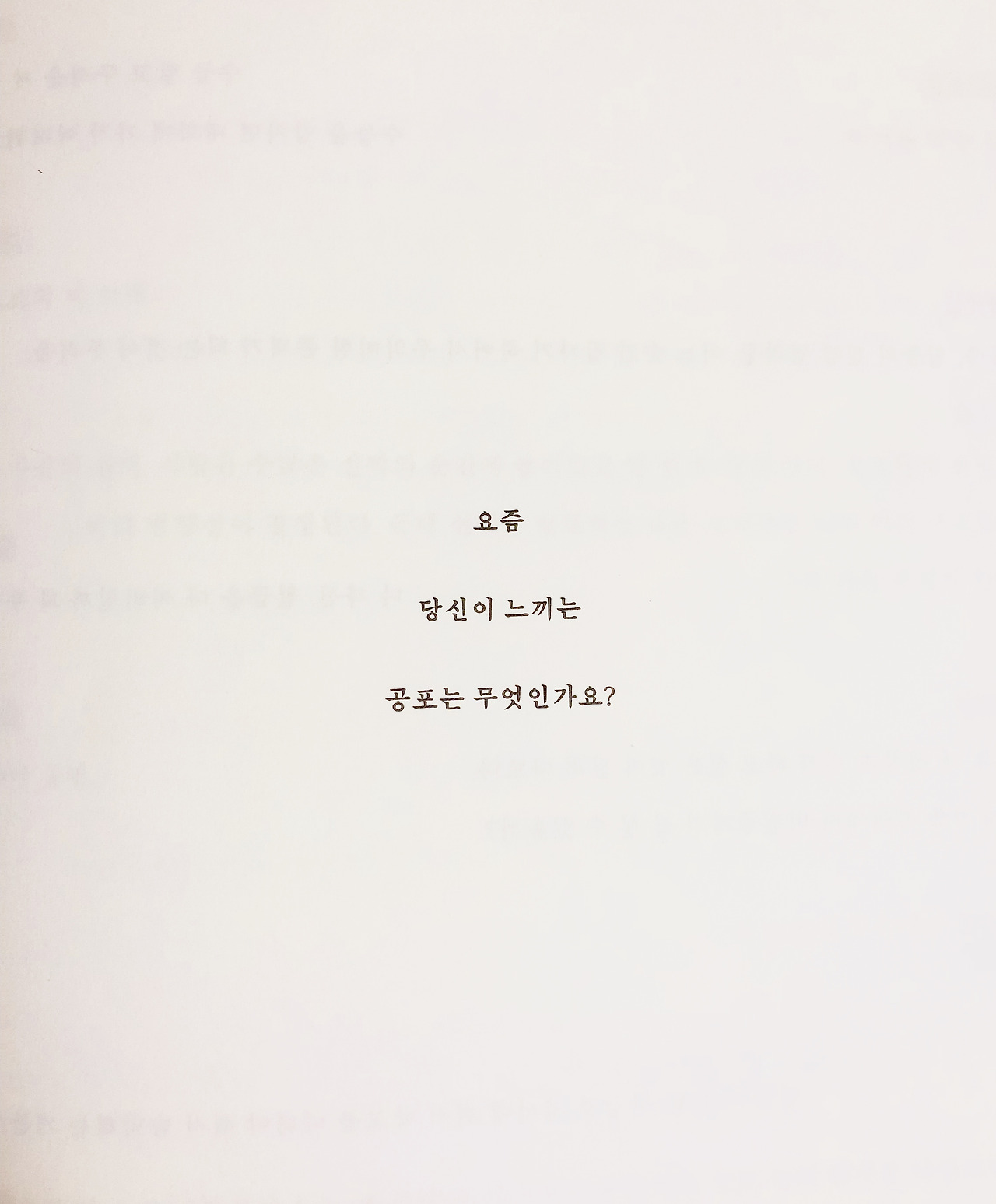 요즘 당신이 느끼는 공포는 무엇인가요?