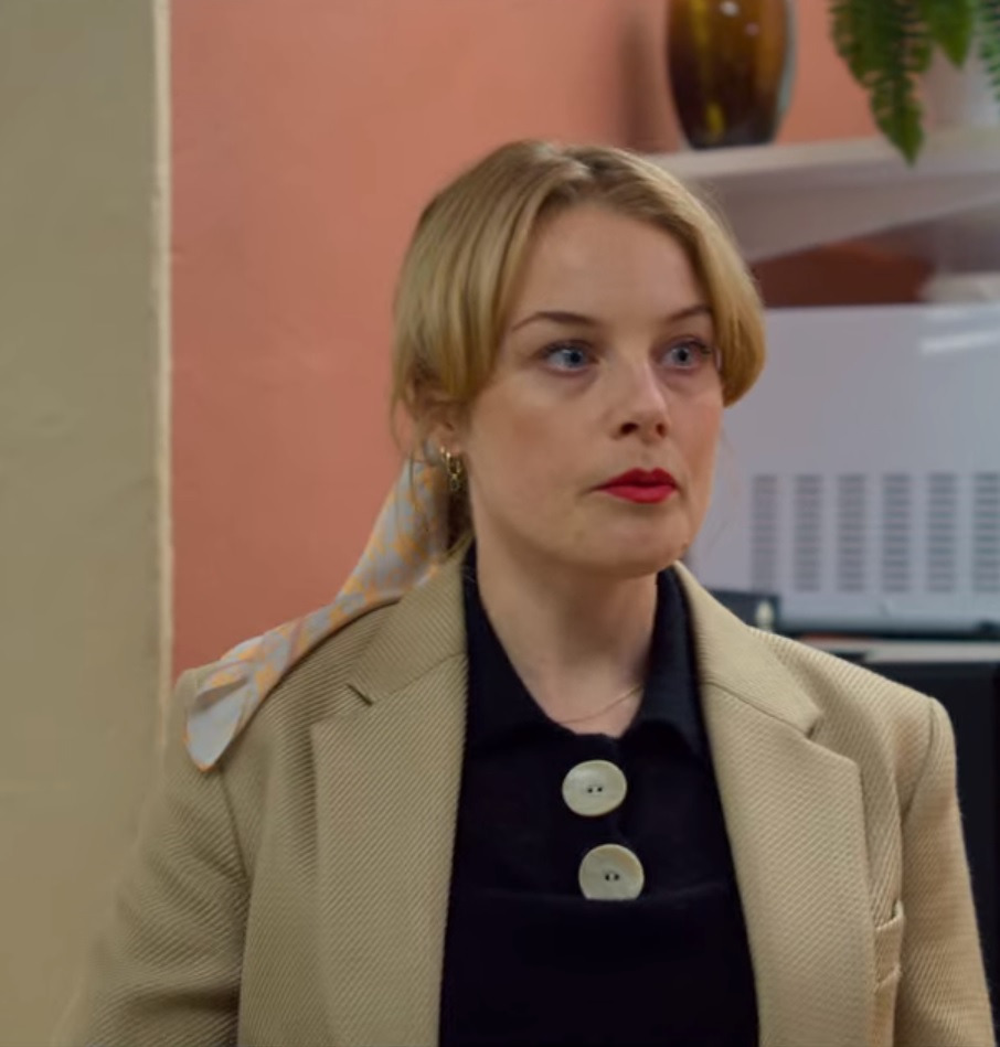소피의 비서이자 사무실의 운영 관련 잡일을 하는 캐롤라인의 경우 러블리하고 순수한 그녀의 성격을 반영하듯 플리츠 치마나 옐로우계통의 니트, 랩스커트원피스 등을 주로 매치한다. 대체적으로 대부분의 등장인물이 지극히 현실적인 직장인룩을 선보이는데 단순하거나 지루하지 않고 그 캐릭터의 성향과 맞아떨어지면서 특유의 무심한듯 멋스러운 룩을 완성하고 있는 것이다. 이러한 패션의 디테일 또한 이 드라마의 주요 감상 포인트라 하겠다.