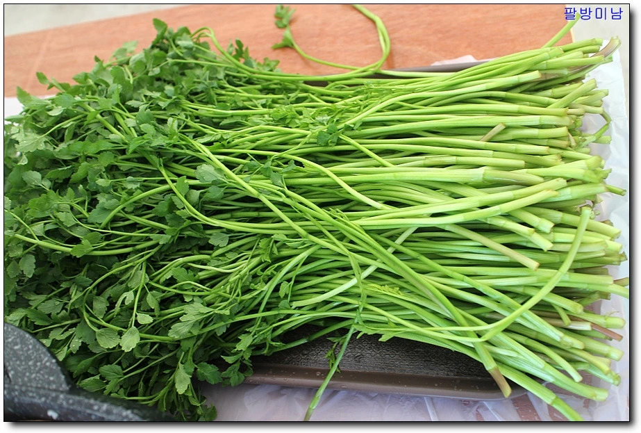 제네바 빠끼에 있는 베트남 식료품점에 갔다 왔을 때 일이다. 규격에 맞춰 반듯하게 정돈된 심심한 스위스의 수퍼마켓에서는 결코 발견할 수 없는 재밌는 분위기가 그곳에 있었다. 다양한 동남아시아의 식재료들이 냉장고에 어지러울 정도로 가득했다. 입구부터 향신료의 냄새로 꽉 찼다. 냉동 파파야와 피시 소스 등이 보였다. 목소리가 와일드했던 여자 사장님을 지나치며 매장 안으로 들어갔다. 차곡차곡 쌓아 올려진 채소들이 싱싱해 보였다. 얼굴을 들이밀고 시원한 냉장고를 샅샅이 탐색해 가며 발견한 채소가 있었다. 미나리!