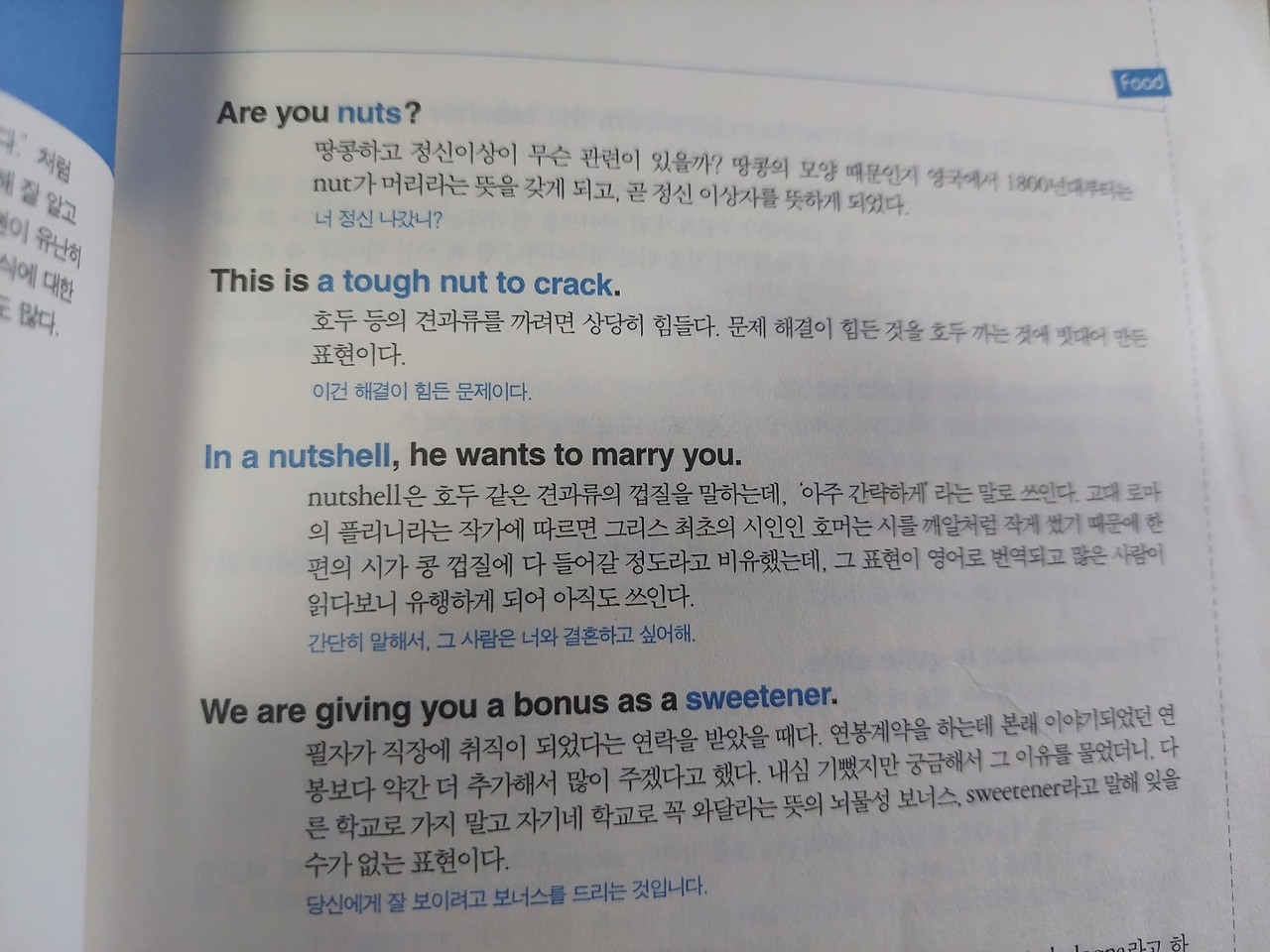 "영어사전에 보면 중요한 단어들은 정의가 수십 개가 넘는다. 그래서 어떤 이들은 일일이 그 정의를 전부 외우려고 하는데, 그보다는 한두 가지 정의만 외우고 나머지는 대개 비유적인 표현으로 이해하는 것이 현명한 경우가 많다. 영어공부도 이제는 유동성을 갖고 탄력 있게 해야할 것이다. 예를 들어 embrace라는 단어를 찾아보면 다음과 같은 정의가 나온다. '포옹하다, 기꺼이 받아들이다, (직업)을 잡다, 포함하다, (산들이) 둘러싸다, 깨닫다.' 이 중에 첫번째 의미만 직설적이고 나머지는 모두 비유적인 표현에 쓰인 것을 정의 속에 포함시킨 것이다. 즉 첫번째 의미만 안다면, 나머지는 비유적인 뜻으로 이해하면 굳이 외우지 않아도 될 것이다. 다른 예를 들어 red라는 단어를 보면 '빨간, 피에 물든, 불타는 듯한, 과격한, (손해) 적자의'등의 뜻이 있다. 여기에서도 첫번째 '빨간'이라는 뜻만 알면 나머지는 모두 비유적인 표현을 정의 속에 포함시켰음을 알 수 있다."(6쪽)