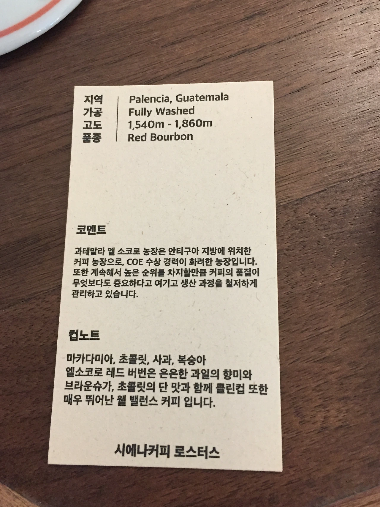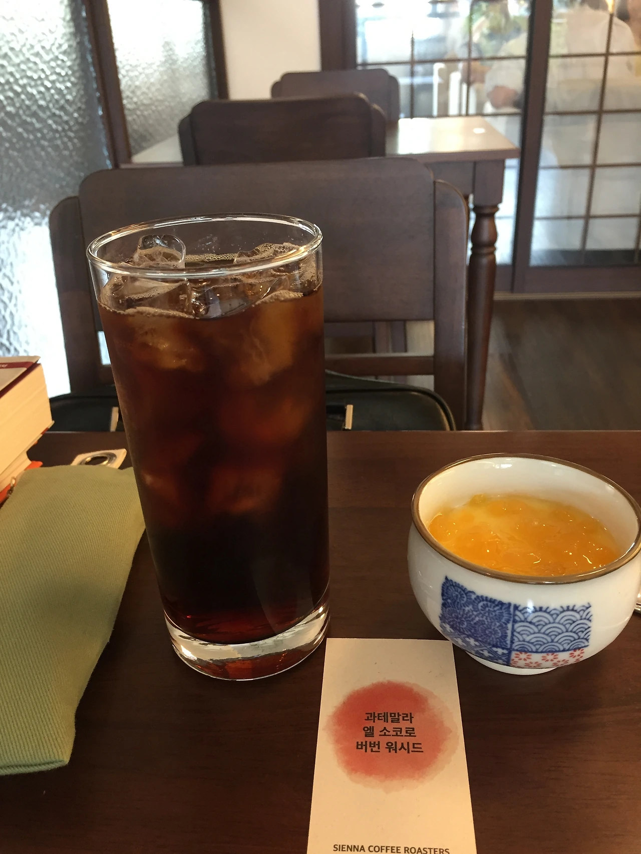 드립 커피는 아메리카노보다 적게는 2,000원 많게는 8,000원까지도 더 나가기 때문에 잘 마시지 않는다. 앞서 말했듯 나는 커피를 좋아할 뿐이지 잘 모르기 때문이다. 커피의 맛을 기가 막히게 구별해 내는 능력은 없다. 그런데 오늘은 첫 월급 받은 날이니까 드립 커피를 오랜만에 주문했다. 대여섯 가지의 드립 커피 원두를 보며 나는 직원분에게 "여기서 가장 고소한 산두가 뭐예요?"라고 말실수를 했다. 산두가 뭐냐 산두가 원두겠지. 평소에 먹지 않던 걸 어색하지 않게 주문하려다 보니 실수가 나버렸다. 뻘쭘했다. 그렇게 산두를 추천받고 향이 가장 좋은 과테말라 엘 소코로 버번 워시드(이름 어렵다)를 주문했다. "카드 앞에 넣어주세요"라고 점원분께서 말을 하시던 찰나, 이렇게 좋은 날 커피만 마시기는 억울했다. 황급히 메뉴판 디저트 코너를 훑고 복숭아 판나코타도 같이 시켰다. 내가 주문한 이름 어려운 산두(원두)에서는 기분 좋은 달콤한 향이 낫고 맛도 좋았다. 복숭아 판나코타는 그냥 요플레 복숭아 맛이랑 비슷했다. 정말 오랜만에 커피 다운 커피를 마셔서 너무 행복하다.