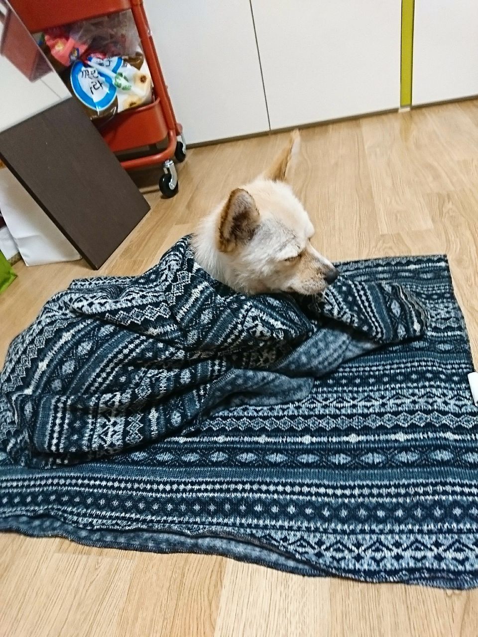 사실 어떤 개인지도 모르고, 저 사진을 찍은 기억도 전혀 나지 않았기에 나는 무척 당황스러웠다. 저는 구경만 하러 온 건데요,라는 말이 도무지 나오지 않았다. 안락사 예정일이 지났지만 건강 상태가 워낙 좋아 한 달이 넘게 보호하고 있었는데 입양 문의가 한 건도 오지 않아 안락사를 하려고 했는데 때마침 당신이 나타나주어 너무나도 기쁘다고 원래는 정식 절차가 있지만 당장 데려가도 된다고 이동장도 빌려주겠다고! 하는데 내가 무슨 말을 하겠는가... 정신을 차려보니 나는 모르는 개와 함께 시청에 제출할 사진을 찍고 있었다. 낡은 이동장에 개를 넣어 굽이굽이 흙길을 걷고, 하교하는 학생들과 함께 버스를 타고, 전철을 타고, 다시 버스를 타고 집으로 돌아왔다. 어깨끈을 멨던 부분에 빨갛게 자국이 남을 정도로 무겁고 힘들었다. 그래도 근처 동물병원에서 간단하게 검진받고 사료와 용품도 사 왔다. 산책도 하고 목욕도 시키고 잠들기 전에 이름도 지어줬다. 털이 누렇고 범상치 않은 개 같으니 나쵸가 딱이었다.