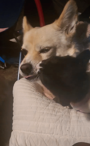 확실히 나쵸는 도전을 마다하지 않는 용감한 강아지다. 그렇지만 도전하는 대상이 약자라면 참아준다. 표정에 노기를 잔뜩 서린 채로 말이다. 아기 고양이가 잔뜩 성가시게 굴어도 끝까지 참는 모습이 어찌나 성숙하던지.(당시 나는 현장에 없었고, 영상을 찍은 후 둘을 떼어놓았다.)