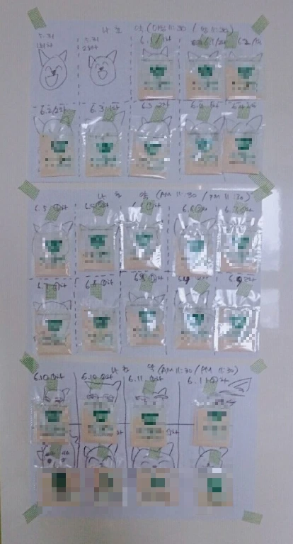 사상충 치료는 3차로 나뉘어서 진행된다. 1차 약물치료 후 한 달간 하루 두 번 12시간 간격으로 약을 먹여야 한다. 그리고 이틀에 걸쳐 2차, 3차 약물 치료를 하고 6개월 뒤 검사해 완치 여부를 확인한다. 당연히 나쵸는 약을 싫어했기에 주사기로 잇몸에 약을 뿌려서 먹여야 했다.