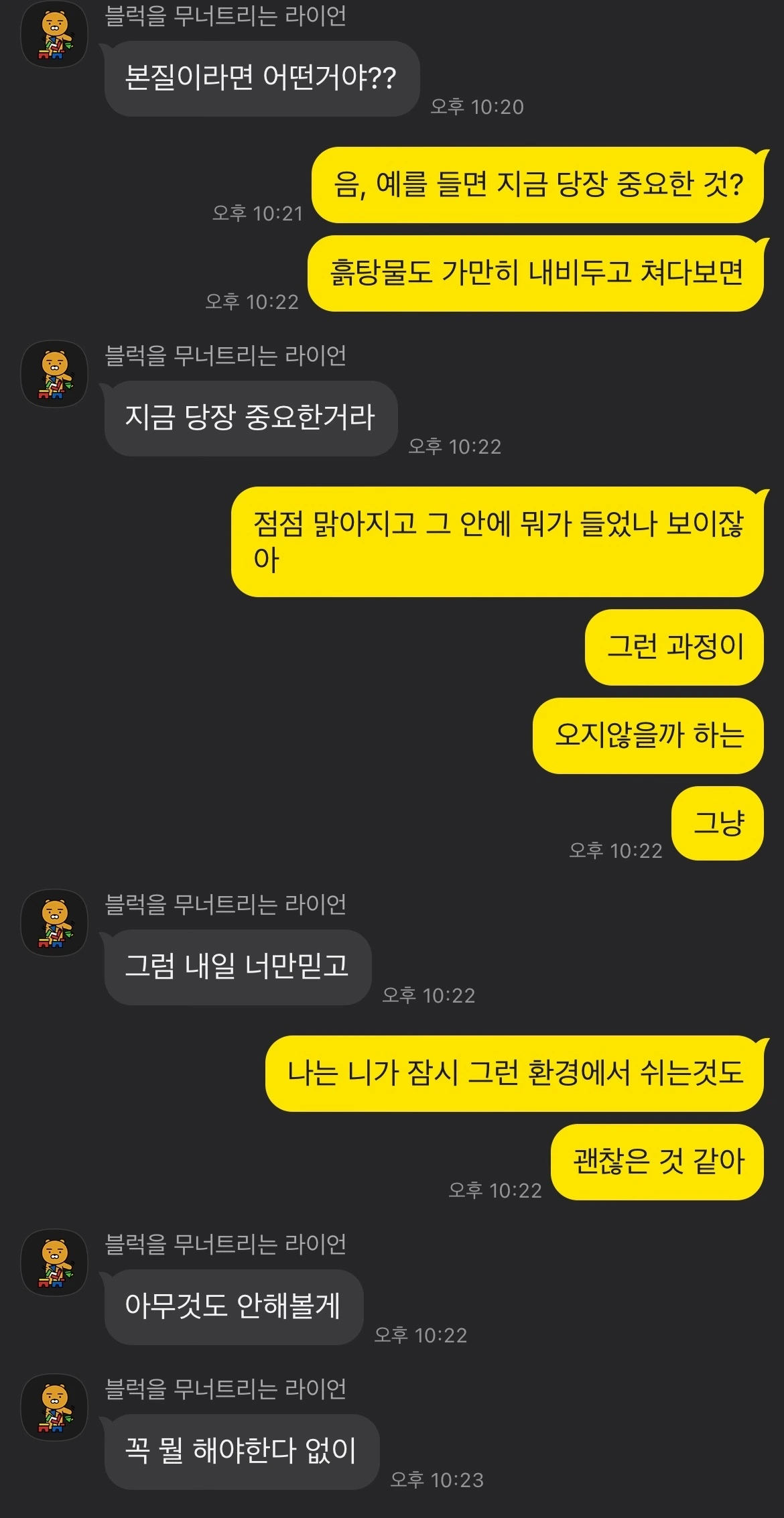 며칠 전, 친구와 카톡을 주고받았다. 당차게 서울을 떠나 경상도 고성으로 떠난 그는, 나에게 ‘곧 서울로 돌아갈지도 몰라.’라는 메시지를 남겼고, 전에는 느끼지 못했던 그의 막연한 두려움과 허탈함 그리고 스스로에 대한 불확신이라는 감정을 느꼈다. ‘원래 새로운 길을 찾는 건 어려워. 이걸 극복하고 이겨내야 네가 새로운 세상을 만들지. 이겨내는 게 또 너 아니겠어?’라고 메시지를 남긴다. 사실, 내가 그로부터 두려움이라는 감정을 느낀 것은 이번이 처음이었기에 그가 걱정되었다.