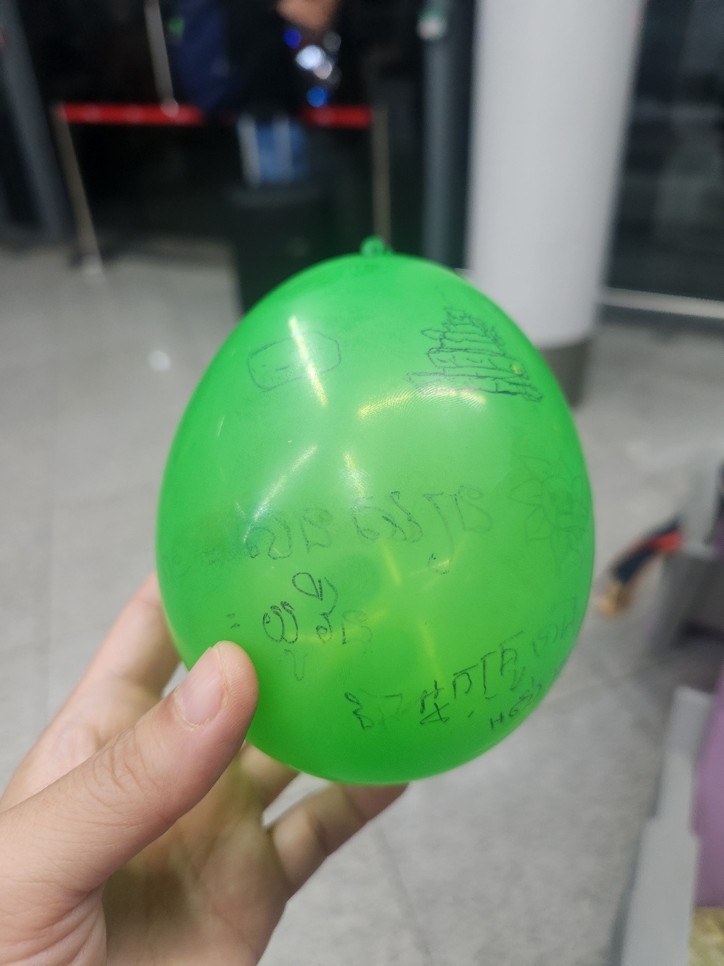 떠나기 전 한 친구가 건네준 풍선 선물. 터뜨리기도 아깝잖아.