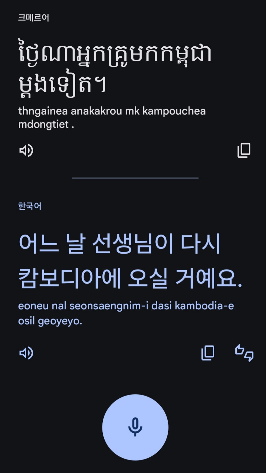 아주 짧은 며칠 동안 라따나끼리에 있었던 우리도 수도 프놈펜에 오니 눈이 휘둥그레진다. 적응이 이렇게 무서운 것인가. 저녁을 먹기 위해 도착한 대형 쇼핑몰은 적응이 좀 필요했다. 마지막 식사를 후다닥 하고, 마트 한편에서 조별로 사진을 찍었다. 열심히 사진에 순간을 주워 담으며 쏜살같이 다가오는 이별의 시간을 대비한 것이다. 사진을 찍고 나니 다가오는 그 엄습한 시간이 모두에게 느껴지는 것 같았다. 우리 팀의 친구들을 꼭 안아주었다. 우리 조에 유일한 여자 아이여서 특히 눈이 많이 갔던 한 친구와 진한 포옹을 했다. 그런데 그 친구의 커다란 눈망울에서 눈물이 똑똑 떨어지는 것 아닌가. 내 품에 안겨 눈물을 숨겼던 아이는 민망했는지 내가 쳐다보니 고개를 휘익 옆으로 돌린다. 'MBTI, T100%'인 내가, 평소 눈물이 없던 내가, 이 커다란 눈망울 앞에서 무너져 버렸다. 흘러내리는 눈물을 부여잡고 이제 진짜 이별의 시간을 맞이하기 위해 다 함께 버스 앞으로 자리를 옮겼다.