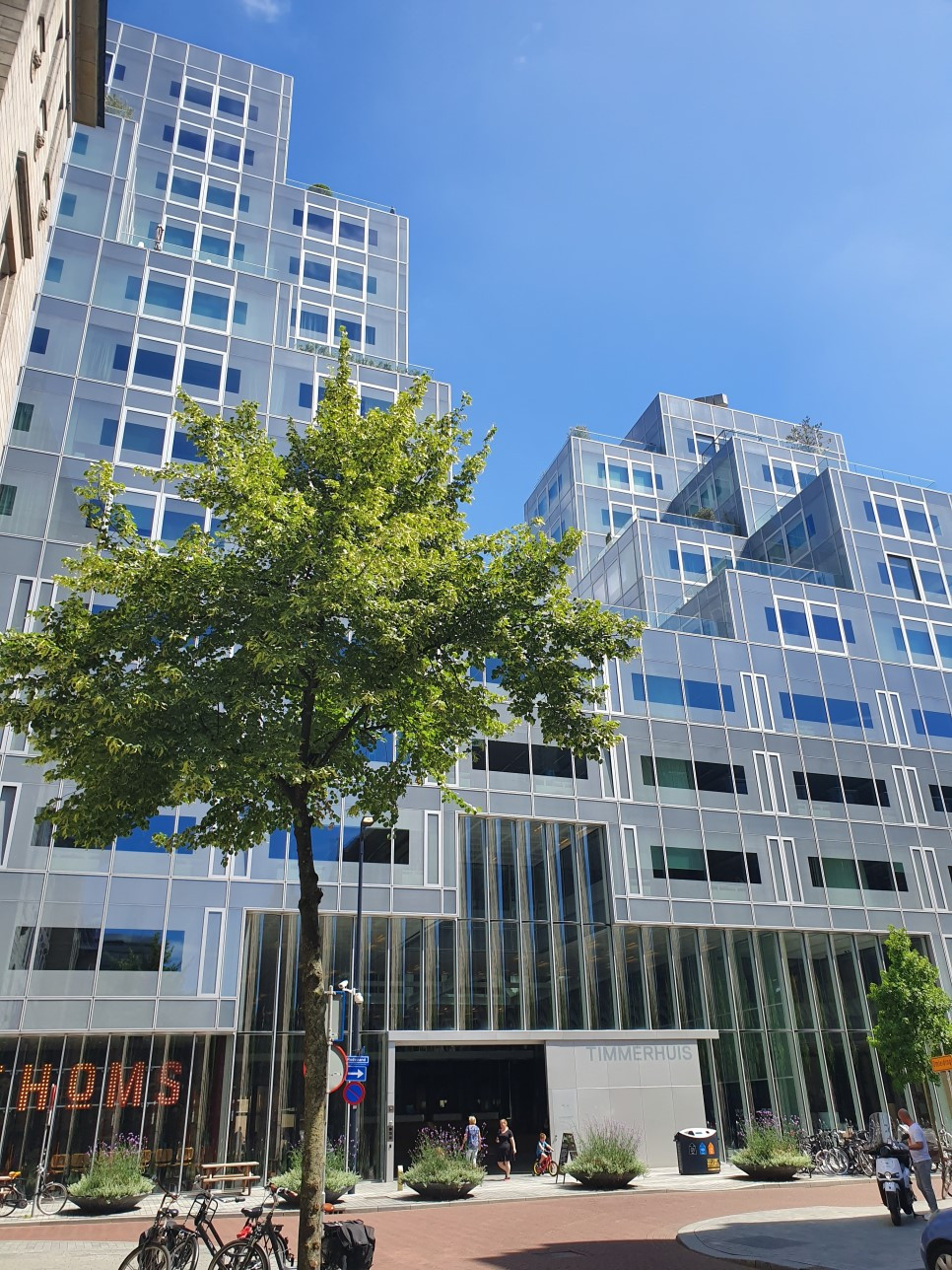 로테르담의 또 다른 주상복합건축물 티메르하우스. 시청 사무실과 주거 공간 등으로 활용한다. 이 또한 로테르담 복구 프로젝트의 일환으로 세워진 곳으로, 녹색 테라스가 눈에 띈다. 얼핏 보면 비슷해 보이지만 각각의 세대가 다 다르게 지어졌다고 한다. 단순히 동일한 층을 올려 쌓은 것이 아닌 조금씩 다른 모양의 공간을 조화롭게 결합한 것이다.