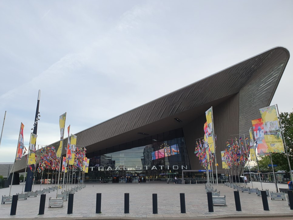 현대건축의 도시답게 로테르담의 첫인상은 강했다. 로테르담 중앙역을 빠져나오면 어느 곳에서도 보지 못한 역의 모습에 뒷걸음질 치게 된다. 조금 더 뒷걸음질 하면, 엇비슷한 삼각형 모양의 중앙역이 한눈에 들어온다. 한쪽 지붕은 하늘을 향해 높이 솟아 있다. 함께 시선을 따라 움직이면 시내 중심으로 향하게 된다. 중앙역 역시 늘어나는 승객들을 감당하기 힘들어 약 10년 간 리모델링의 공사 끝에 새로운 모습으로 태어났다. 하지만 역을 나타내는 글자와 시계만은 바꾸지 않았다. 과거와 현재가 공존하는 이 곳에서 로테르담의 여행을 시작했다.