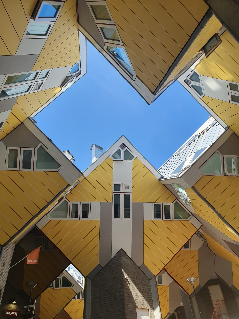 큐브하우스는 로테르담 건축하면 가장 많이 떠올리는 건축물이 아닐까 싶다. 정육면체 큐브 38개를 붙여 만든 건축물. 상가, 호스텔, 주거공간 등으로 활용되고 있다. 각각의 큐브를 하나의 나무로 보고, 나무가 옹기종기 모인 하나의 숲으로 표현하고자 했다. 각각의 입방체가 모인 위를 바라보면 아름다운 하늘이 눈에 들어온다. 독특한 외관과 다르게 내부는 다소 실용성이 떨어진다는 비판도 받지만, 여전히 큐브하우스 내 호스텔은 로테르담에 왔다면 하루쯤 묵어야 하는 장소로 각광받고 있다.