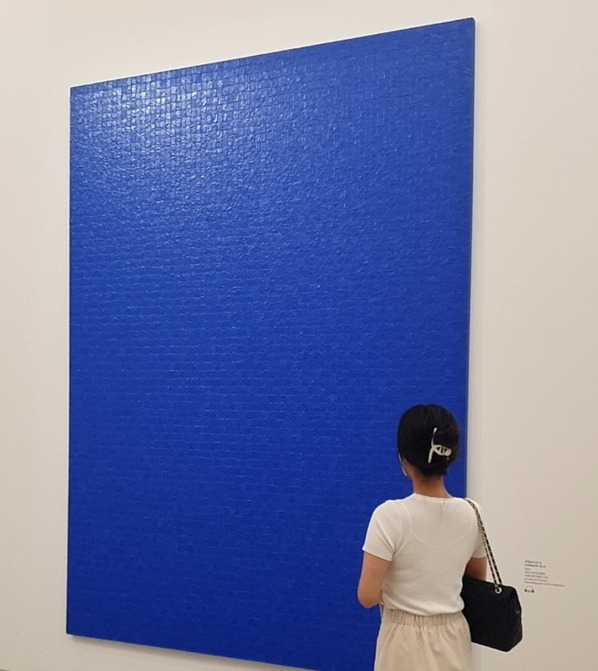 '청색의 '무제 90-10-5' 작품을 보면서다. 화면을 꽉 채운 청색의 단색조 작품은 그의 고향 마산의 앞바다의 색이다. 반복되는 청색 격자무늬지만, 조금 멀찍이 떨어져서 작품을 바라보면 이야기는 달라진다. 미묘하게 다른 청색들이 함께 일렁이며, 파도를 치고 있다. 가장 한국적인 정서를 표현하기 위해, 그는 고향의 색을 가져왔는지도 모른다. 그의 작품엔 실로 청색이 많다. 평면의 화면에도 색과 정서가 담기면 충분히 입체적으로 보일 수 있구나. 보이지 않는 것을 그렸던 그는 작품에 자신의 핏줄과 맥박을 담았다.