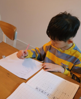 일하는 엄마 덕분에 늦은 밤 숙제를 하는 재군