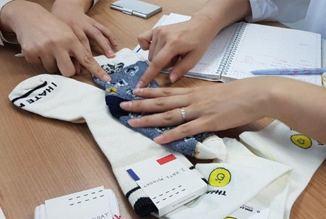 양말을 만들기로 생각하고 이 쪽 분야에서 저명하다고 알려진 ‘전문의’를 찾아갔다. 그렇다. 전문의. 우리가 제일 먼저 찾아간 사람은 양말 전문가가 아니라 전문의였다. 대학병원 연구실에 들어서자 귀여운 양말을 신고 계신 교수님이 보인다. 검정 양말에 예쁜 하트무늬. 이 분도 양말을 꽤나 좋아하는 분이다. 무작정 교수님께 양말을 만들고 싶다고 말씀드렸다. 이내 고개를 끄덕이더니 우리 생각에 매우 공감한다고 하셨다. 도움이 되면 좋겠다며 본인의 진료 경험을 꼼꼼히 설명해주신다. 연구실을 나와 교수님이 강조한 사항을 잊지 않게 되새긴다. 어두운 색이 아닌 밝은 색, 흘러내리지 않으면서도 조이지 않는 편안함, 땀이 잘 흡수되는 소재.