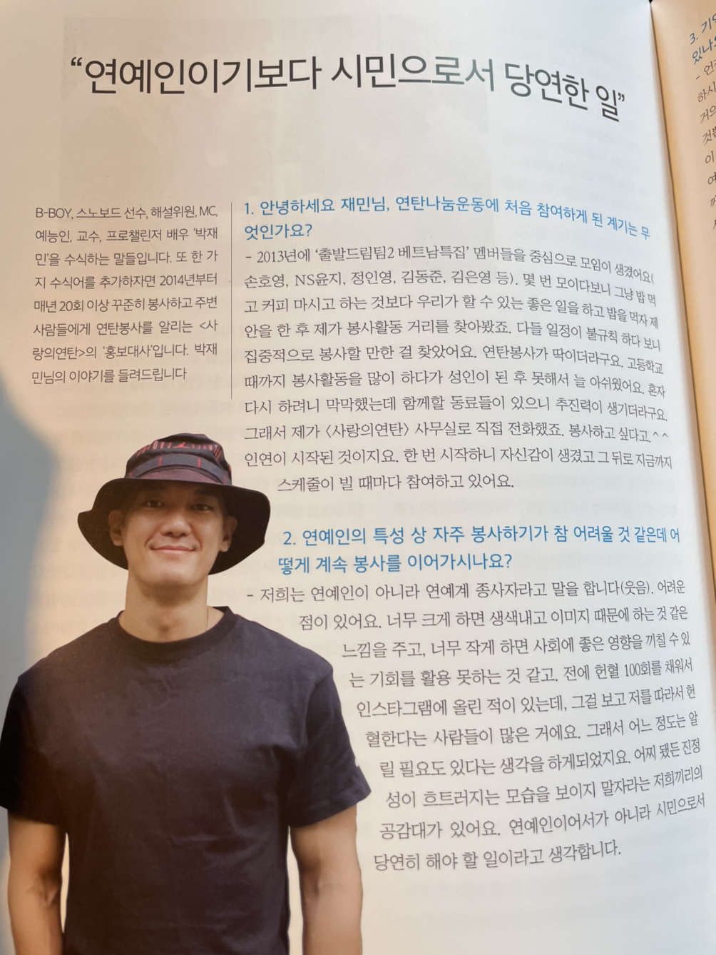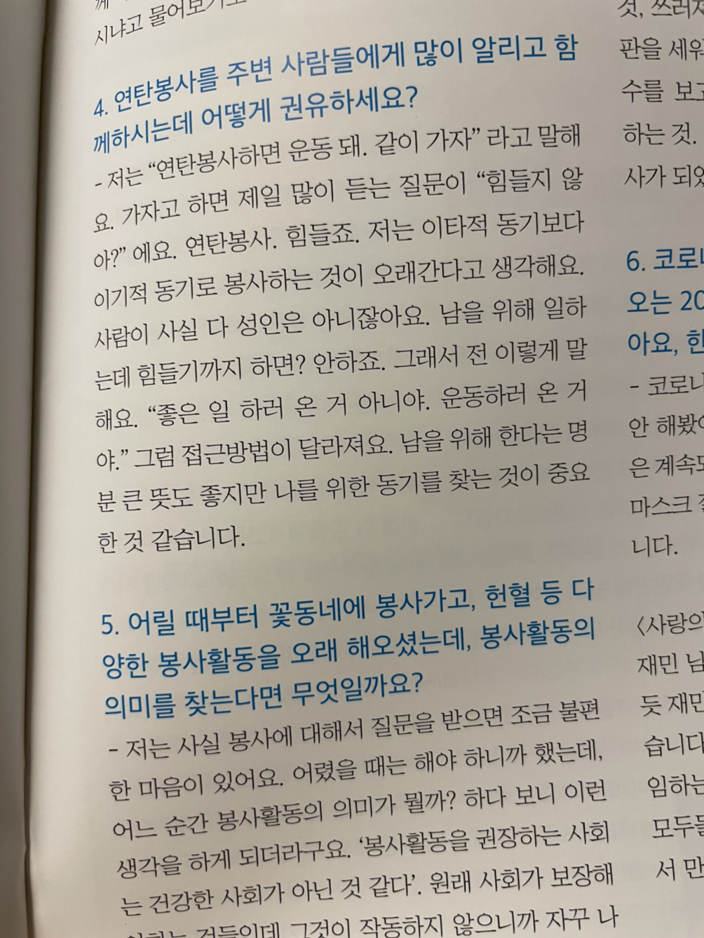 우리를 담당해준 간사님이 “저희 홍보대사 박지민 님 봉사팀이 저희가 봉사할 곳도 한 곳 해줄 거예요.”라고 말씀하셨는데 봉사 후 나눠주신 소식지에서 역시 이 분도 이렇게 말한다.