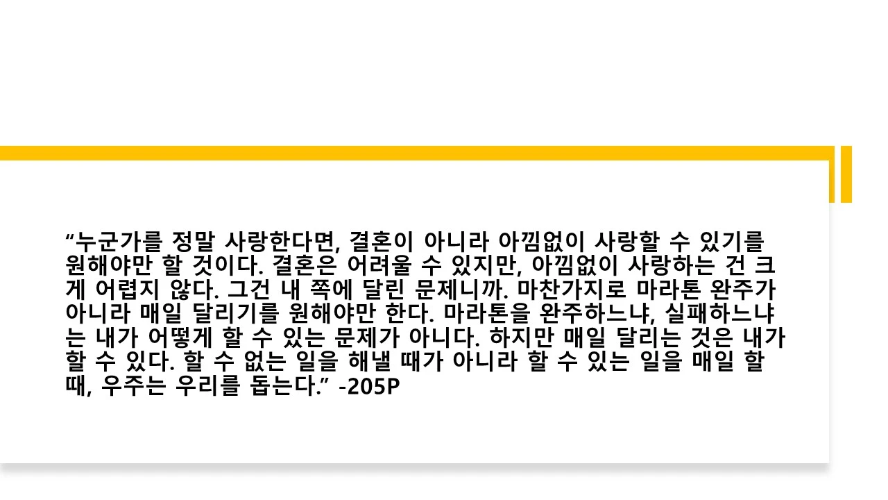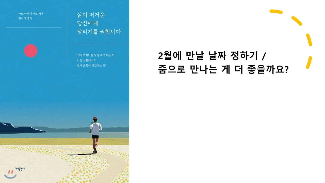 2012년의 에세이가 2021년의 사람에게도 여전히 유효하고 매번 걷던 사람을, 달리기가 잘 맞지 않는다고 생각한 이를 달려보게 만들었다. 같이 읽으며, 누군가 선정한 책을 보고 같은 책으로 각자가 가진 인생의 필터로, 안경으로 그 책을 바라보고 이야기하는 것이 무척 재밌었다. (앞으로의 책들도 기대가 된다!)