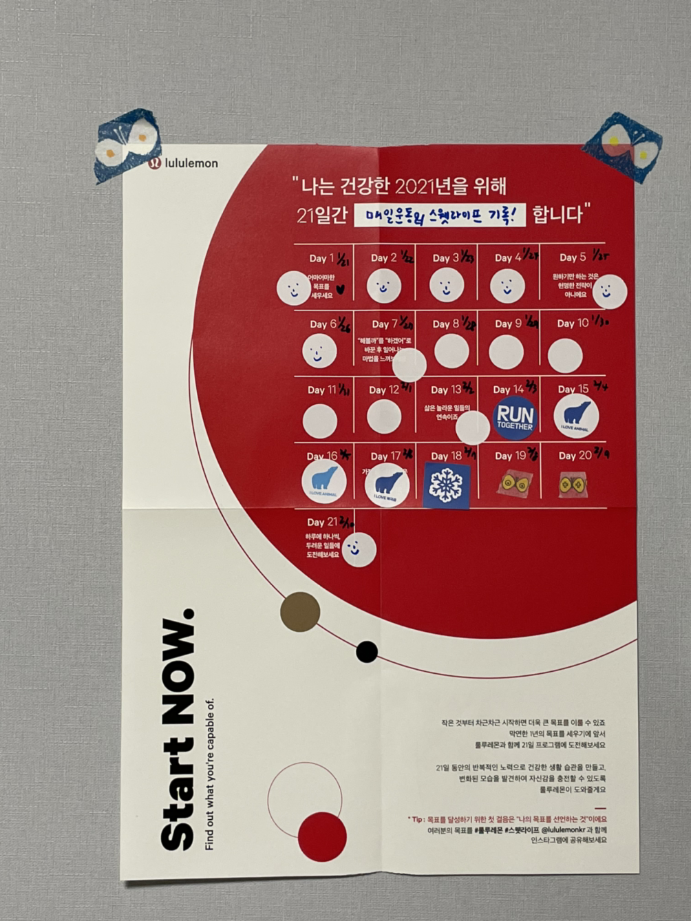 매일 운동하고, 기록하기를 선언하고 매일 달리거나, 걷거나, 요가 등을 이어가며 21일을 보냈다.
