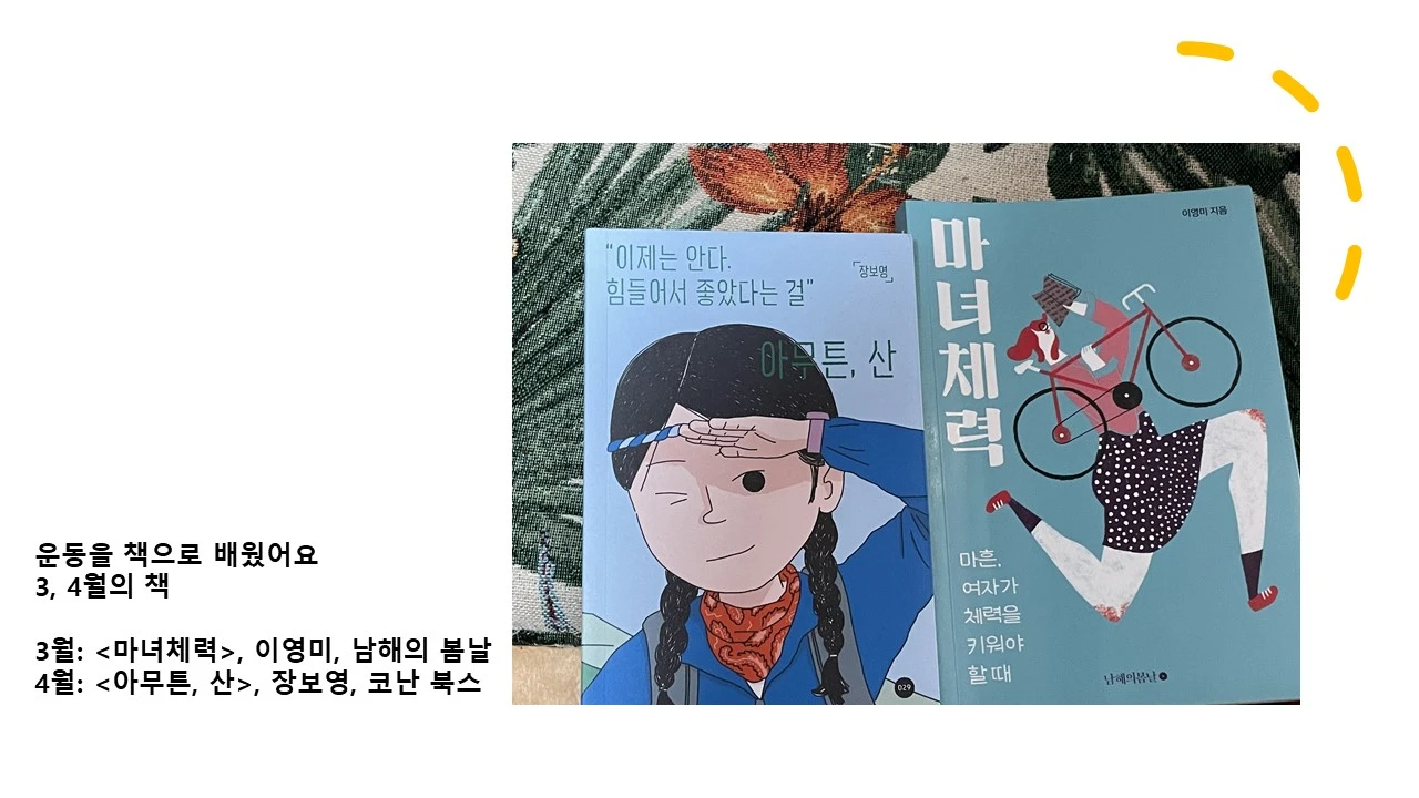 3,4월에는 <마녀체력> 과 <아무튼 산> 을 읽고 나눕니다.https://docs.google.com/forms/d/e/1FAIpQLSfviccZIrrEH2RAcyoAn14R1IGxQUPaisFkfRiT4SGqkPzorA/viewform