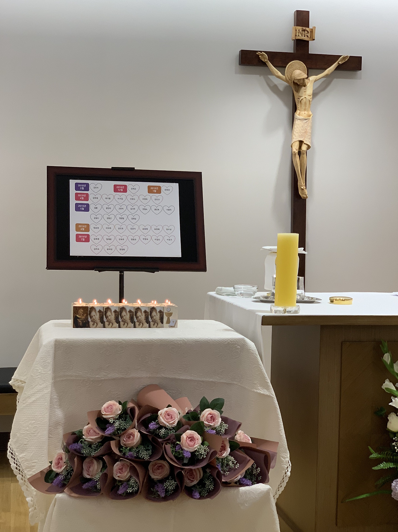 :호스피스 병동에서는, 환자뿐만 아니라 환자의 가족까지 그 돌봄의 대상이라고, 재차 들었다. 그래서 그곳에 계시던 분이 돌아가시고 난 뒤 1년 정도까지는 사별가족모임을 통해서 가족과 만나며 그들의 상태, 그들의 이야기를, 죽음 이후 이어지는 삶의 이야기에 귀를 기울인다. 어제 처음으로 가 본 모임. 미사-그림 나눔-점심식사 순이었는데, 미사 중간에는 꽃 봉헌도, 초 봉헌도 있었다. 엄마의 이름을 찾으며 반가운 마음.