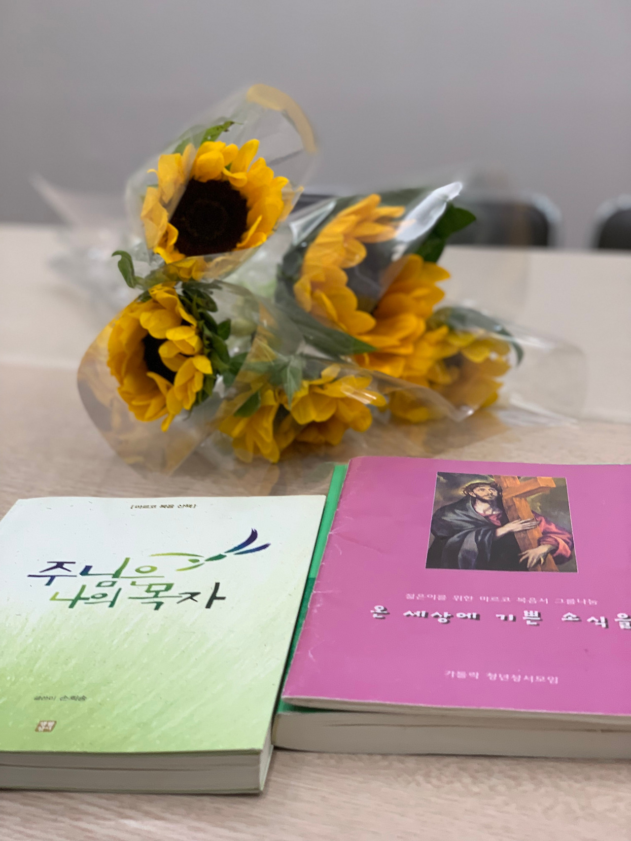 꽃 한 송이가 가지는 힘. 즉각적으로 미소 짓게 하는 선물. 주는 이는 이미 베풀며 다 받은 것이라던 주교님 말씀도 생각난다.
