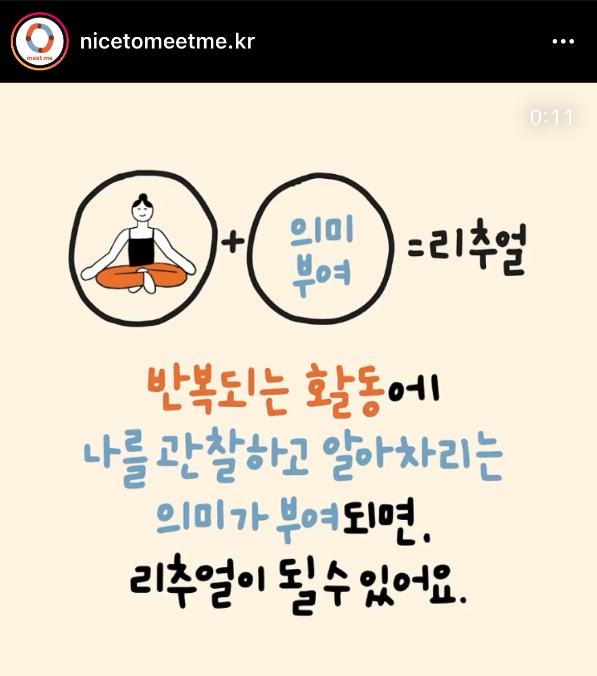 반복되는 활동에 나를 관찰하고 알아차리는 의미가 부여되면 리추얼이 된다고요.