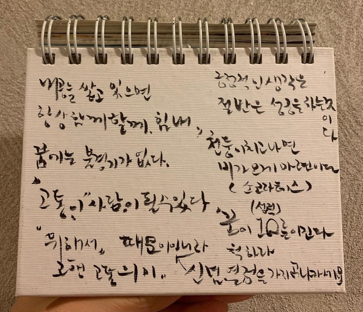 붓 펜으로 쓴 문장 가운데 한 문장이 눈에 깊이 남는다.