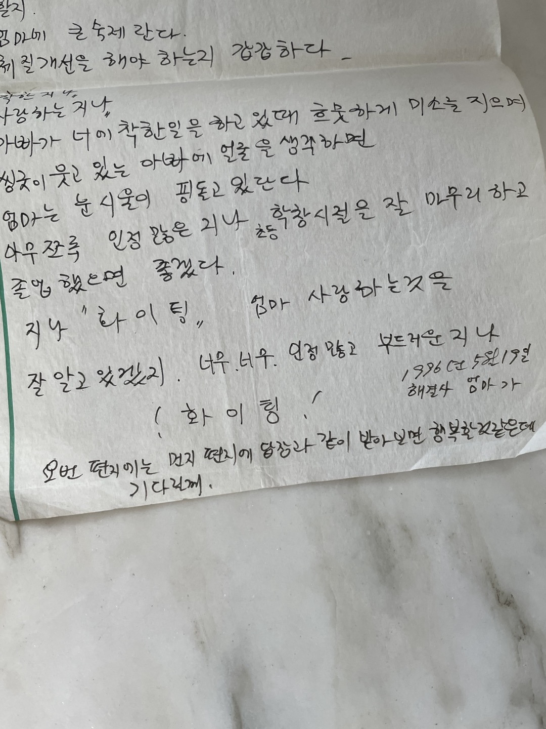 언젠가 김하나 작가님 글을 읽다가 작가님 어머님께서 딸 해산일로부터 5살 생일까지의 나날을 기록한 자필 육아 일기 『빅토리 노트』가 있다는 것을 알고 무척 부러워했다. 하지만 나에게는 엄마의 수많은 편지가 있고 그것들이 그 노트와 같은 힘을 발휘한다.