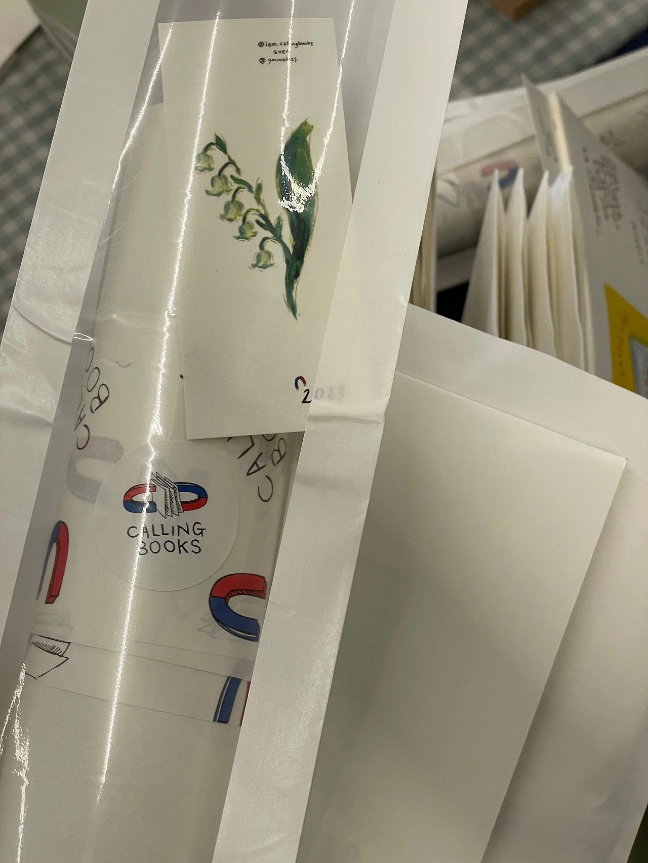 은방울꽃 책갈피를 밖에 붙여 두고선 그 행복의 말까지 잘 전달되면 좋겠다고 생각했습니다. 창업기 또한, 비닐을 쓰지 않고 종이봉투로 포장했습니다.