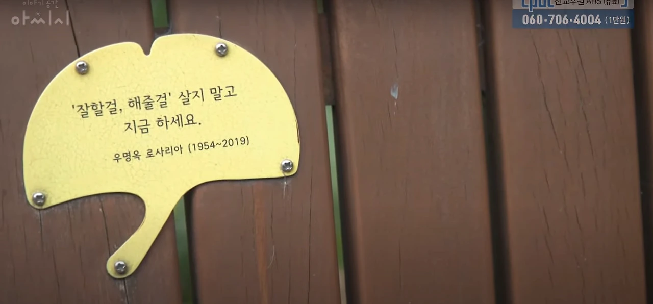 어느날 공원에서 본 벤치에 엄마가 자주 하던 말을 딴 벤치 입양 등