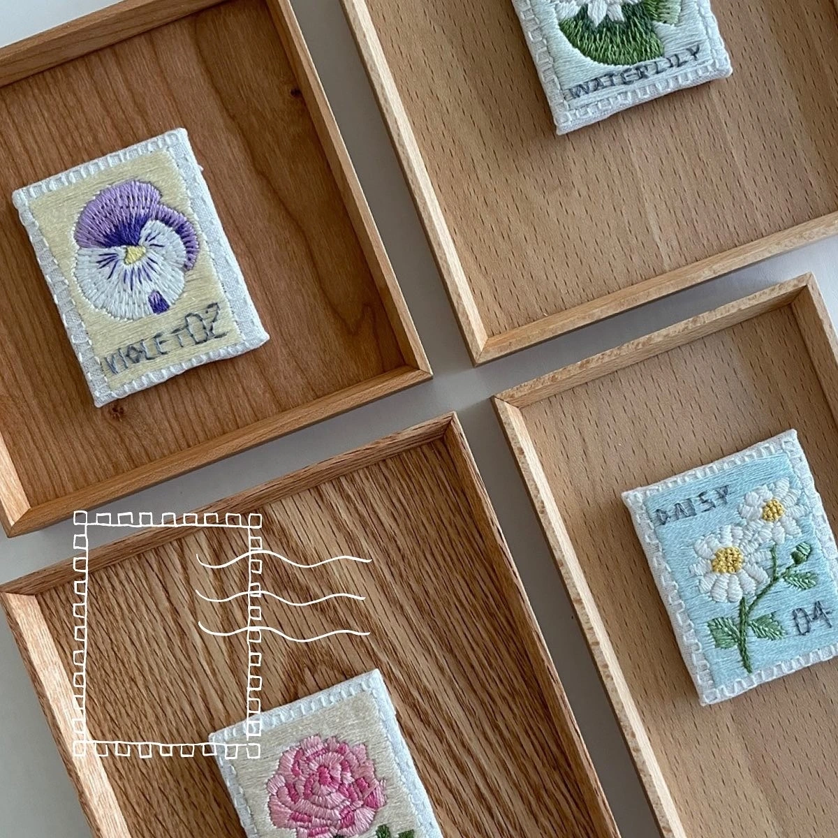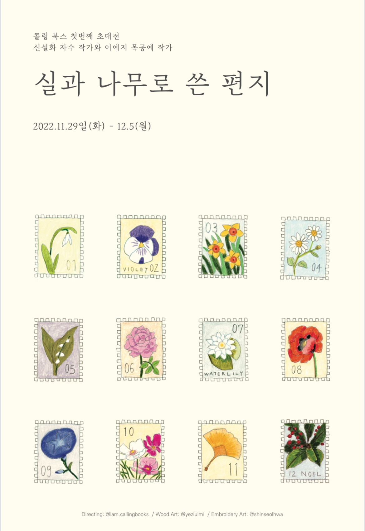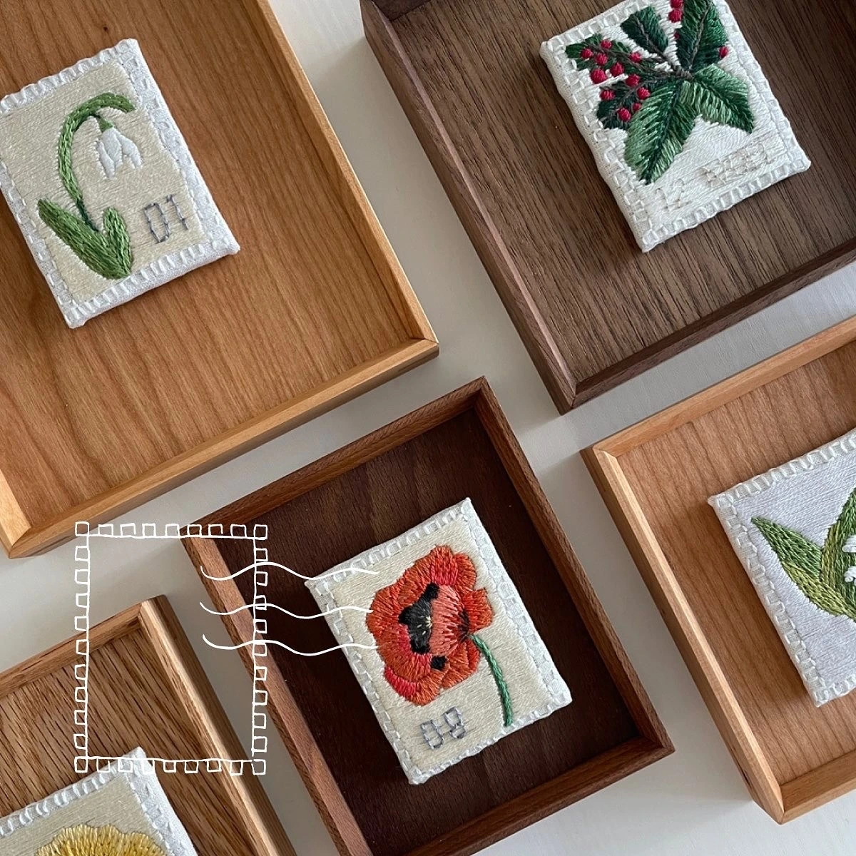 1년 열두 달, 각 시기에 맞는 꽃을 우표 모양에 담아 실로 표현했고,