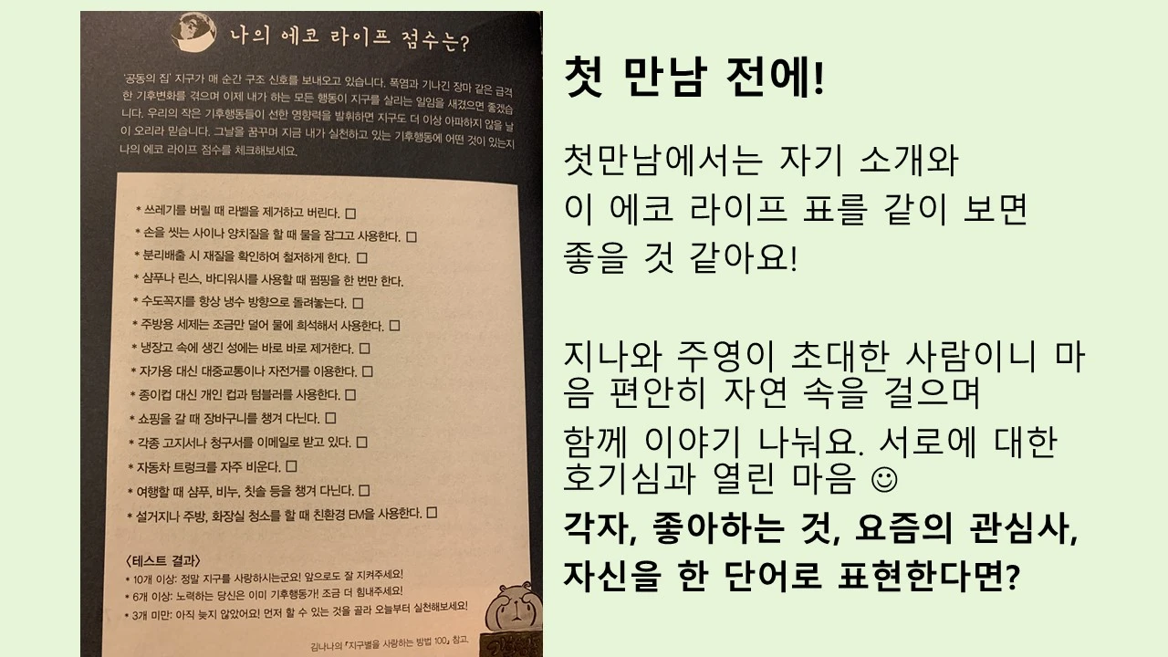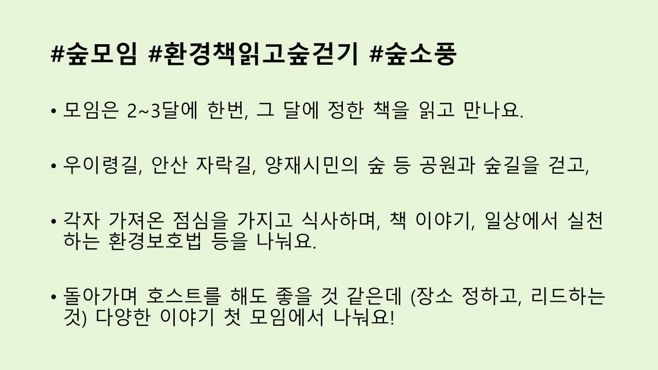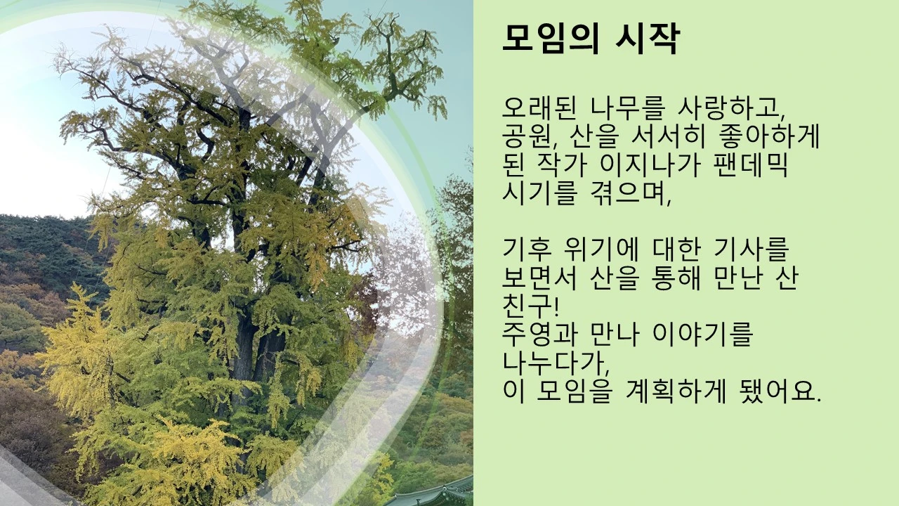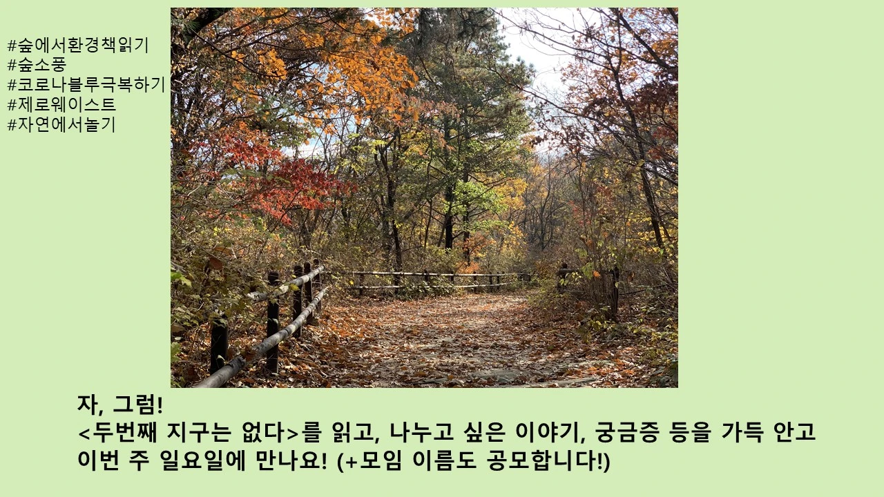가을에 만난 산친구 주영이와 함께 <환경이 관한 책 읽고 모여서 숲길 걷기> 모임을 결성하고,