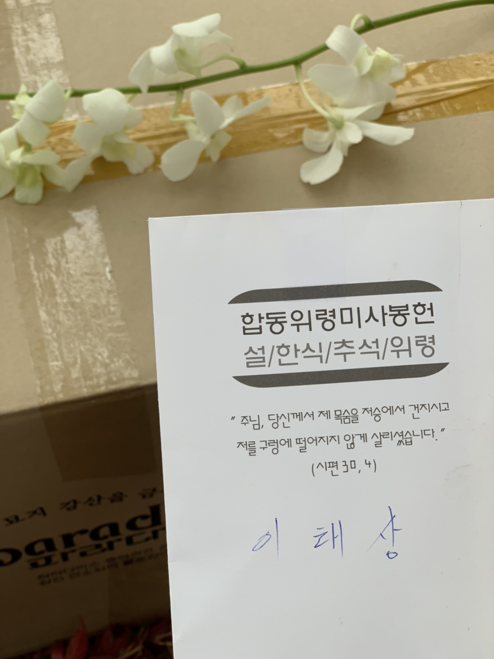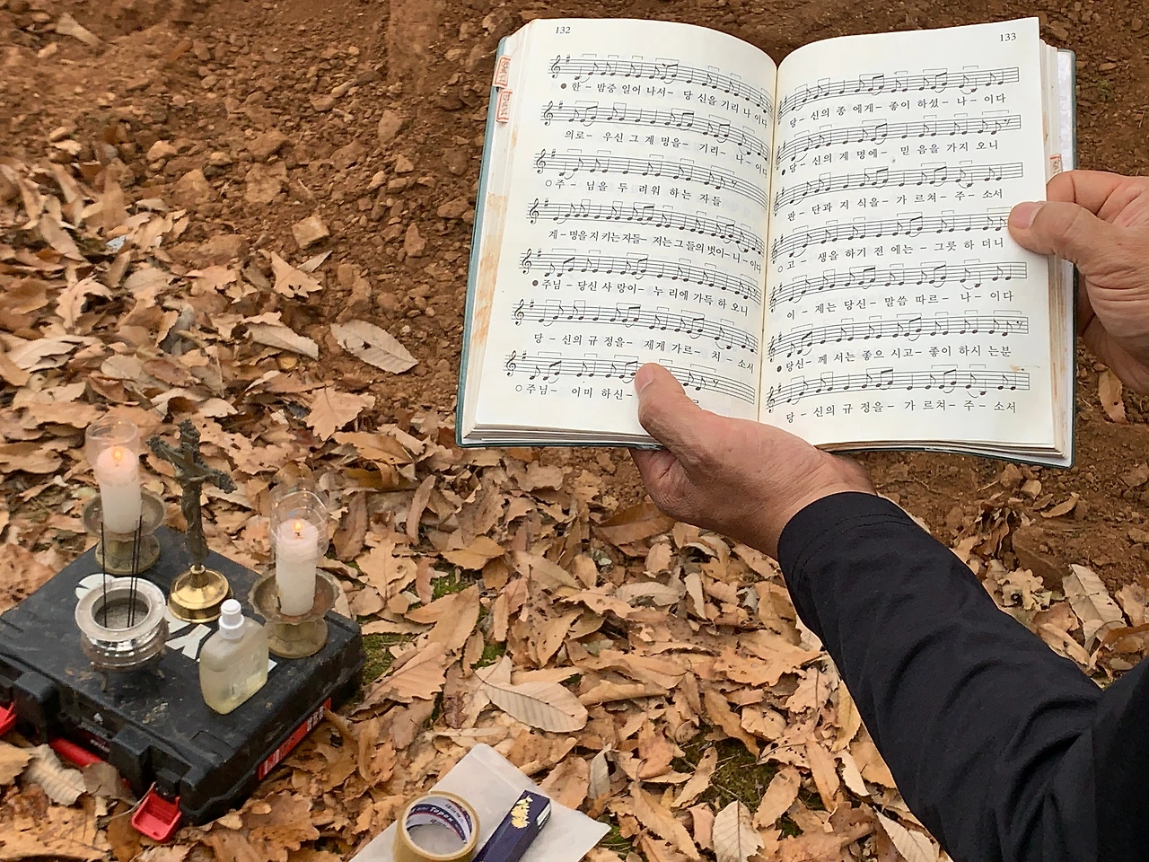 개장을 도와주시는 기사님들이 하나씩 유골의 부분을 모아서 종이관 속에 넣었고, 우린 관리소장님과 기도 양식에 맞춰 기도 했다. 노래로 연도 하는 동안 종이관 속의 오빠가 우리 앞에 왔다.