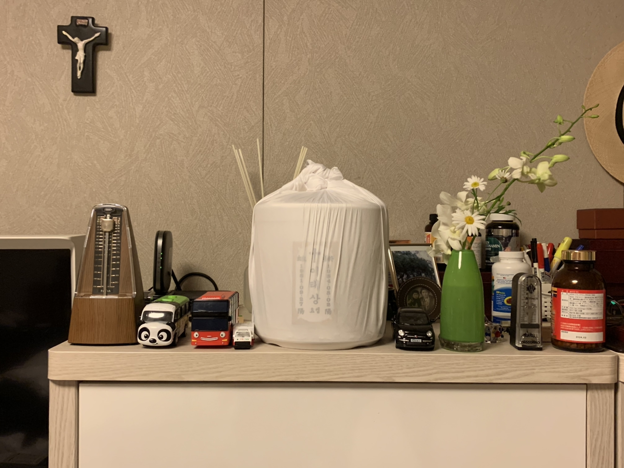 오빠의 묘를 개장하고, 이장하는 주간. 살아있는 모든 생물에 축복을, 이미 세상을 떠난 분들에겐 평화의 안식을 청한다. 내일 엄마 곁에 모시기 전까지는 우리 집에, 아빠와 안방에서의 하룻밤을 보낸다. 동생이 "옆에 장난감도 좀 놔 줘." 라는 문자에 얼른 조카들의 장난감을 갖다놨다.