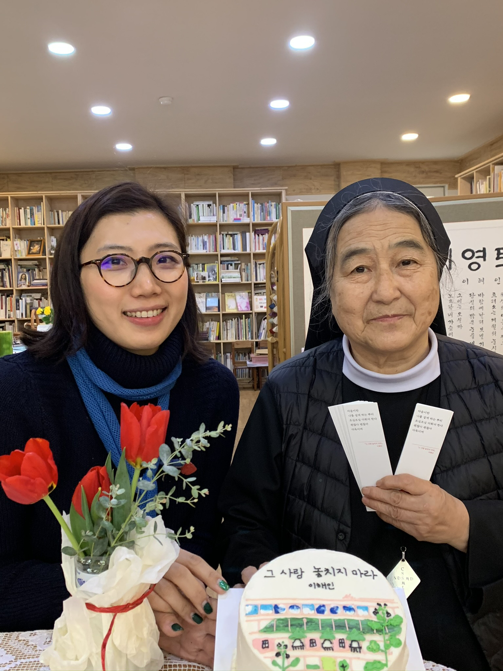 말씀에 귀 기울이게 되는 어른의 이야기가 엮어져 나와서 다행이다. “이 책은 제가 그 어느 날 또 다른 먼 나라로 건너가기 전, 한 인간으로서의 인생 여정을 축약해놓은 것 같아 읽는 도중 잠시 멈추어 눈시울을 붉히기도 하였습니다. “ 수녀님이 서문에 쓰신 이 문장 때문에도 하루 아침 집중해서 바로, 바로 읽기 보단 조금씩 한 장, 한 장씩 아껴가며 읽고 싶다. - 오랜 인연의 수녀님, 수녀원에 계신 이모로 여기며 계절에 생각나는 과일, 설과 추석에 작은 것이라도 보낸다. 올해 못 뵈었다고 생각했는데, 코로나를 모르던 1월에 <그 사랑 놓치지 마라> 책이 나온 뒤 친구가 만들어준 케이크와 함께 부산에 다녀왔었다.
