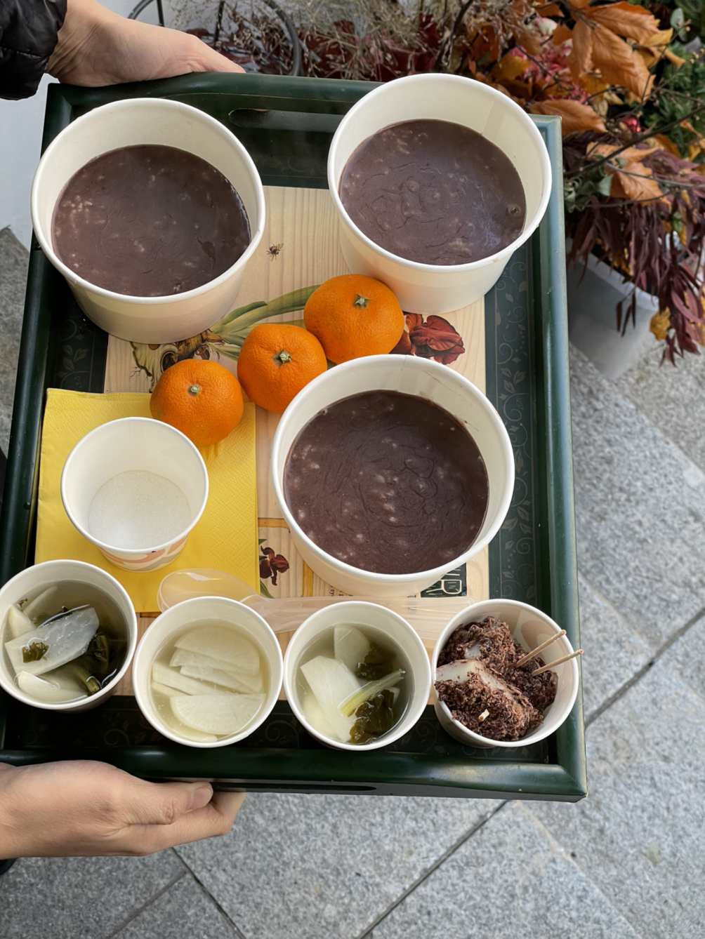 집 앞에서 늘 주차와 기타 등등의 도움 받는 분들에게 귤/동치미/팥죽 3종 세트를 전했다. 엄마는 늘, 타인을 대접할 때 잘 하셨다. 섬세하게, 기억에 남게.