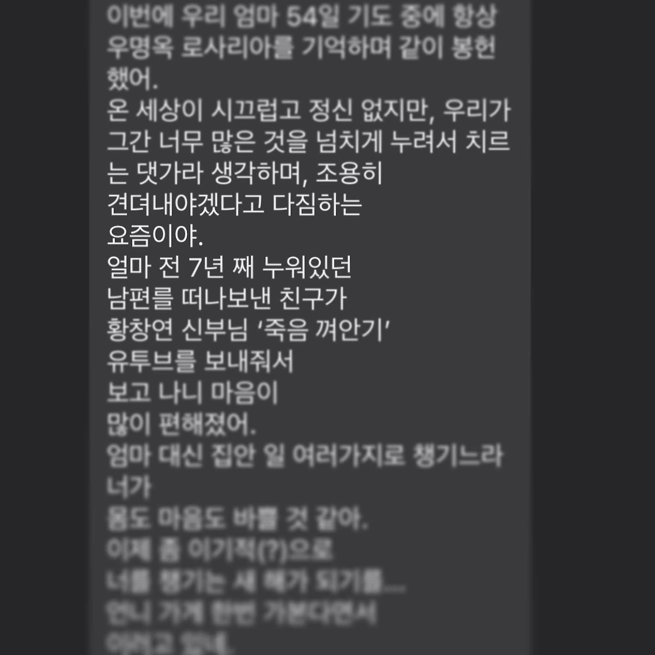 올해는 엄마의 친구분들 몇 분에게도 주소 확인을 하고 카드를 보냈는데, 긴긴 메세지 답장을 받으며 우표를 붙여, 그분의 성함을 적어 카드 쓰길 정말 잘했다는 생각이 들었다. 그리고 나는 왜 이렇게 엄마 친구분들과도 친한(?) 찐한(?) 사이인걸까! 생각도 해봤다.