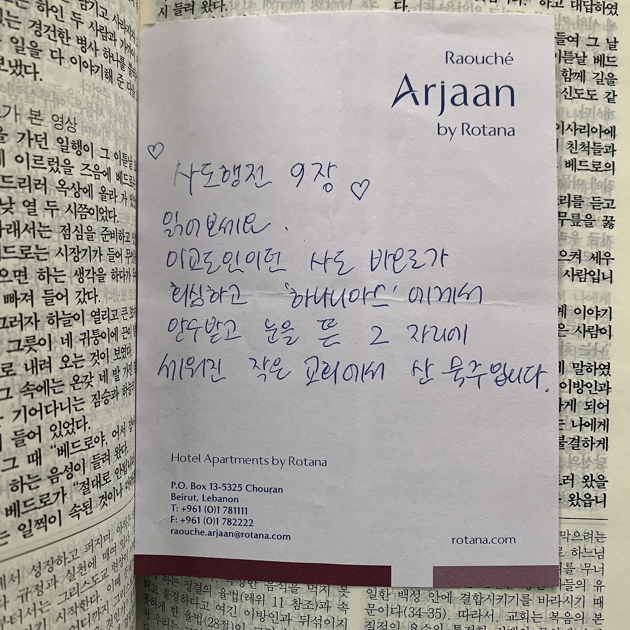 엄마의 한마디: 성가책, 노트, 다양한 책들 사이나 앞뒤에 흩날리듯 써둔 엄마의 문장들.