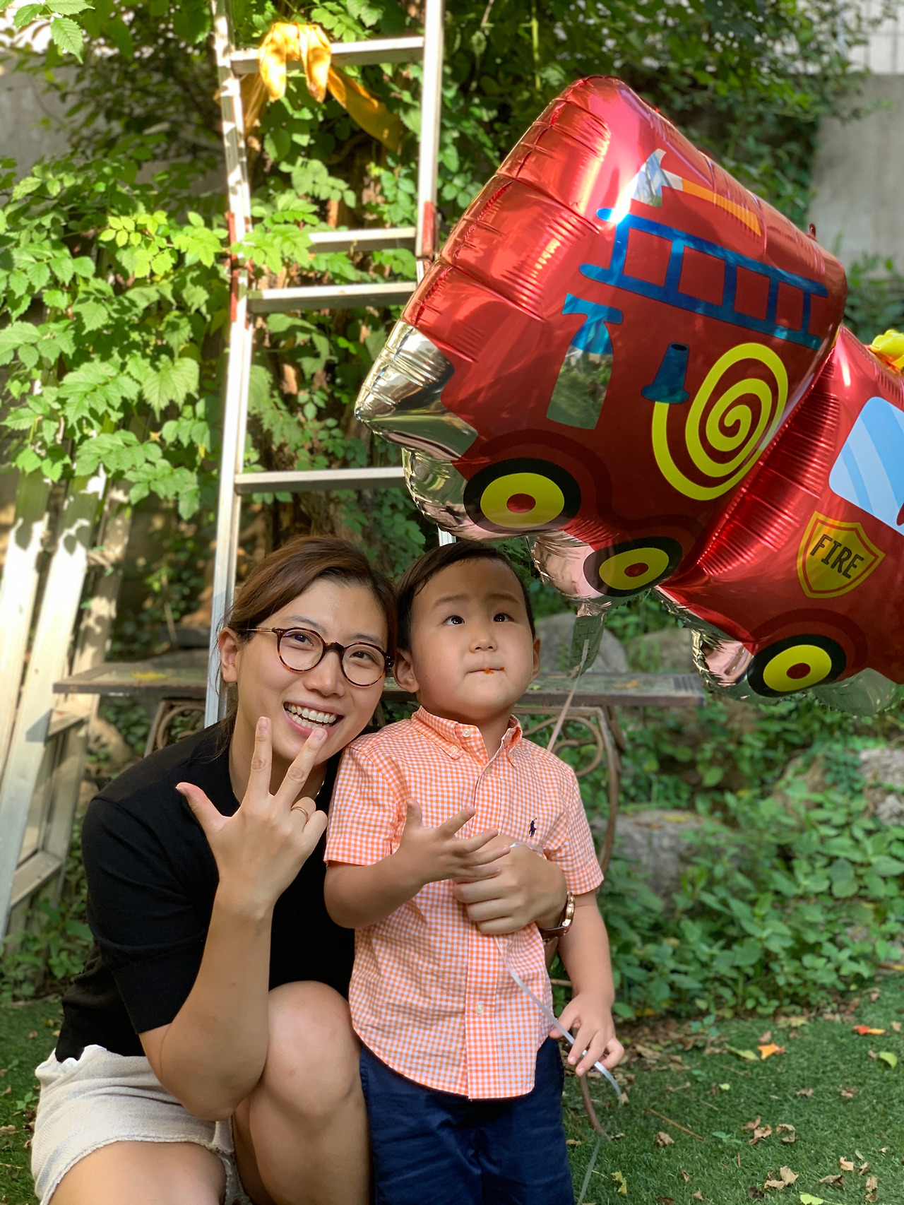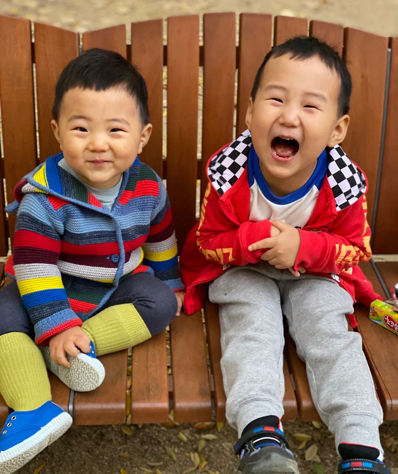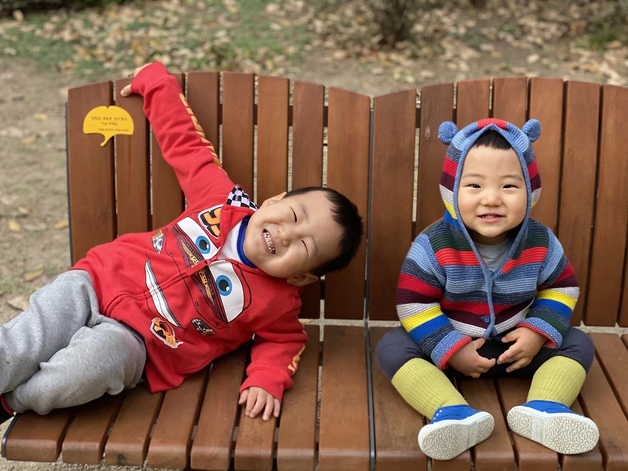 조카사진: 할머니 벤치에 놀러간 남동생네 가족