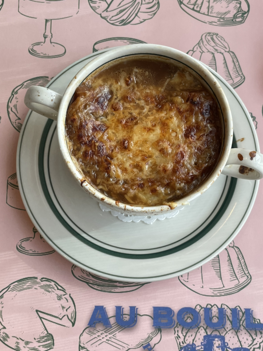 금호동 오부이용에서의 양파수프와 기타 음식,