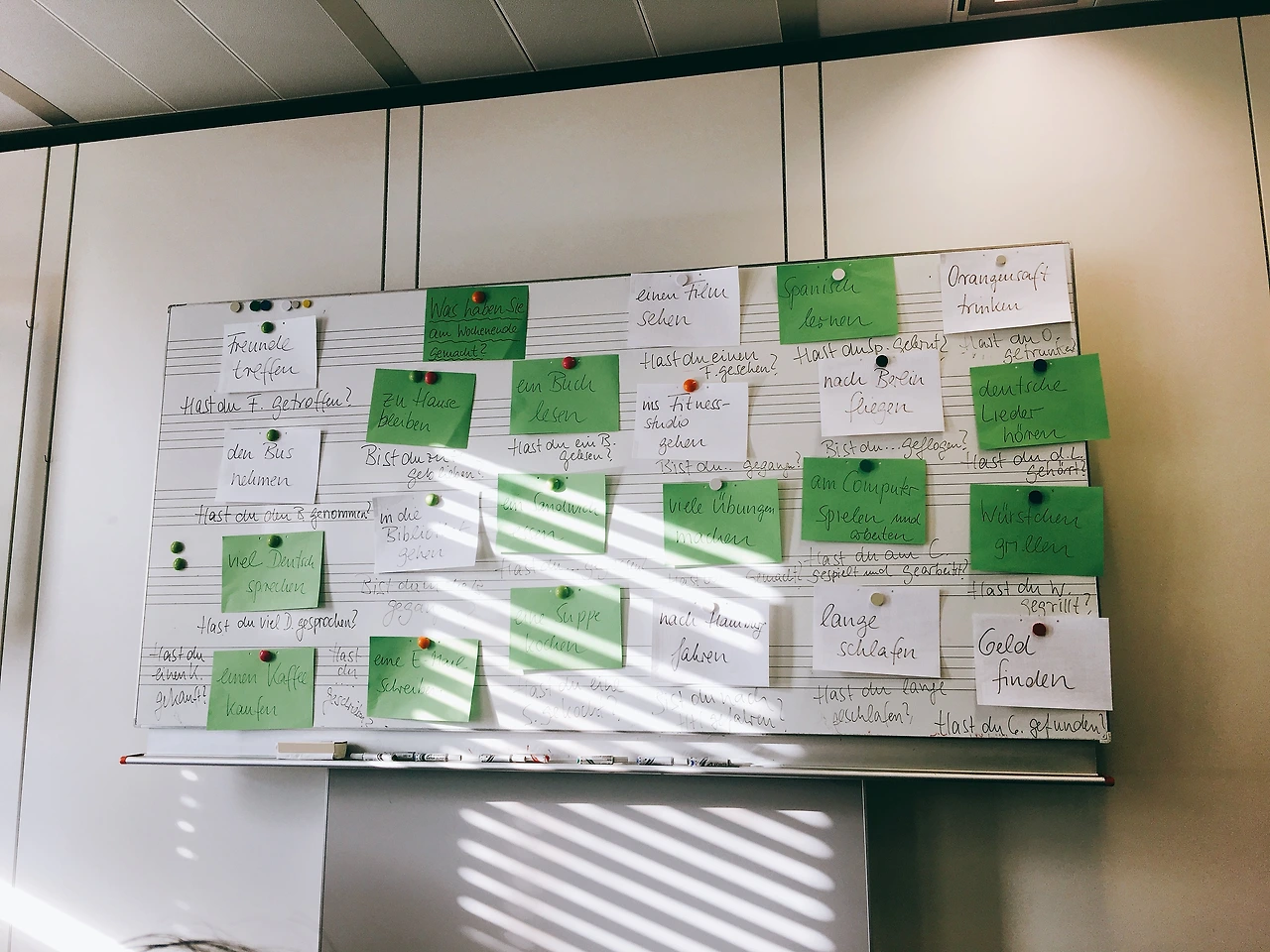 학기 시작 전에 비용을 내고 수강 신청한 사람들에 한해 독일어 수업을 미리 시작했는데, 3주 동안 거의 5시간 동안 매일 진행되는 스파르타식 수업이었다. 그래도 그 선생님이 진행하는 수업은 힘들고 지루하다고 느껴지질 않았고 독일어 공부가 너무 재미있었다. 원래 외국어 공부를 좋아하고 나름 습득이 빠르다고 생각했다가 핀란드에 가서 핀란드어의 벽을 넘지 못해 주눅 들어 있었는데, 독일어를 공부하면서 약간 자신감을 회복할 수 있었다.