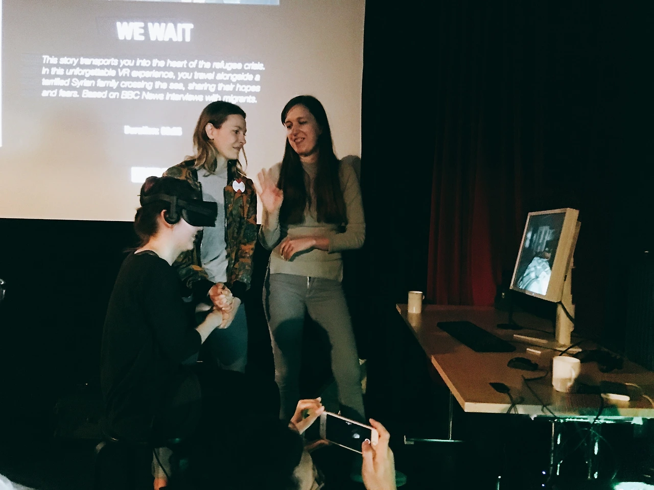 다음날부터 워크숍이 시작되었고 워크숍이 진행되는 상영관 바로 옆에 다과를 즐길 수 있는 공간이 있어서 그곳에서 관객들을 안내해 VR 체험을 제공했다. 영화를 보러 온 사람들이라 VR 기기를 보며 낯설어하고 체험하지 않고 가는 몇몇 사람들도 있었지만 그래도 꽤 많은 사람들이 체험에 참여해 주었다. 눈물이 날 정도로 매우 깊은 인상을 받았다며 긍정적인 의견을 주는 사람들도 있었지만 보면서 멀미가 나서 힘들었다는 의견도 있었다. 영화 상영 중이라 관객이 없을 때면 옆에 가서 다과를 먹거나 우리끼리 다른 주제의 VR 체험을 다시 해 보면서 자유로운 시간을 가지기도 했다. 다른 학생들은 친구들을 데리고 오기도 했는데 나도 친구들을 초대해서 체험에 참여해보게 했다.