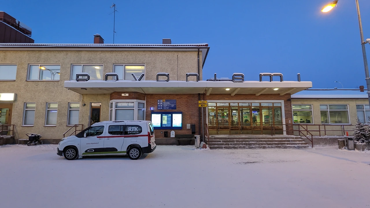 기차에서 내리니 오울루와는 또 다른 차원의 추위가 얼굴을 얼얼하게 때렸다. 기차역에 있는 전광판을 보니 영하 20도, 체감 온도는 아마 영하 25도 정도쯤이라고 보면 된다. 바람이 불진 않았지만 뼛속까지 파고드는 추위에 밖에 오래 있을 수가 없어서 기차역에 들어가서 버스를 기다렸다. 확실히 겨울이라 그런지 현지인보다는 관광객이 많이 보였고, 스키를 들고 내리는 사람들도 보였다.