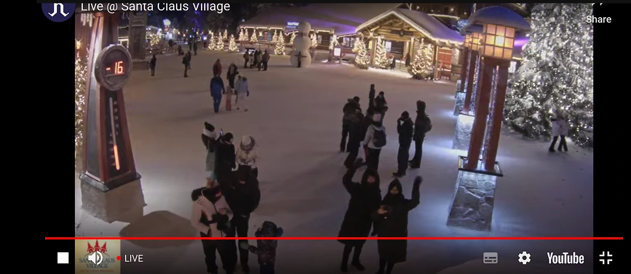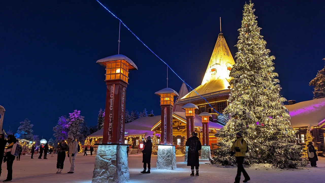 산타 클로스 마을이 특별한 점은 여름에 해가 지지 않는 백야와 겨울에 해가 뜨지 않는 극야 현상이 일어나는 북극권이 있다는 점이다. 그렇기에 산타 클로스 마을에서 사람들이 가장 많이 사진을 찍는 장소도 아마 이곳일 것이다. 그리고 유튜브로 산타 클로스 마을을 실시간으로 확인할 수도 있는데, 영상을 보면 카메라 앞에서 통화를 하면서 손을 흔드는 사람들을 여럿 볼 수 있다. 이날 나도 남편도 가족들에게 연락해서 손을 흔들면서 안부 인사를 했다.