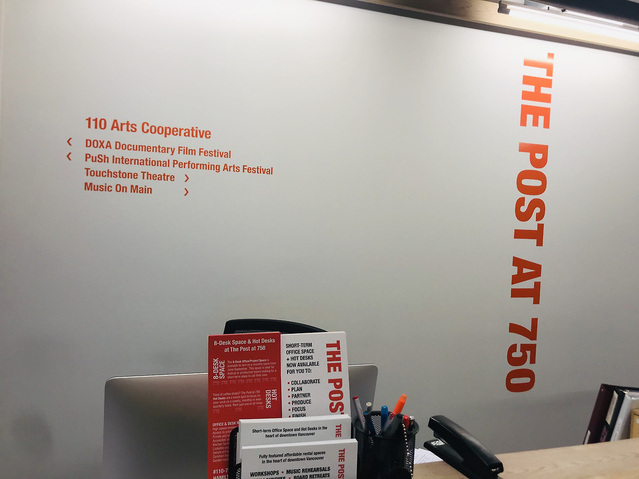 이곳에서 처음 미팅을 한 곳은 PuSh 페스티벌이었다. 최근 예술감독을 맡게 된 프랑코 보니(Franco Boni)는 페스티벌에서 일을 시작한 지 3주 정도 된 상태라고 했다. 홈페이지에 보면 새로운 예술감독 소개에 대한 글을 확인할 수 있다. 그는 아직 적응 중인 느낌이었다. 페스티벌을 소개하는데 조금은 어색함이 느껴졌다. 사무실은 총 4개의 예술기관*이 110 Arts Cooperative라는 이름으로 함께 공유하며 사용하고 있으며, 스튜디오도 있었다.