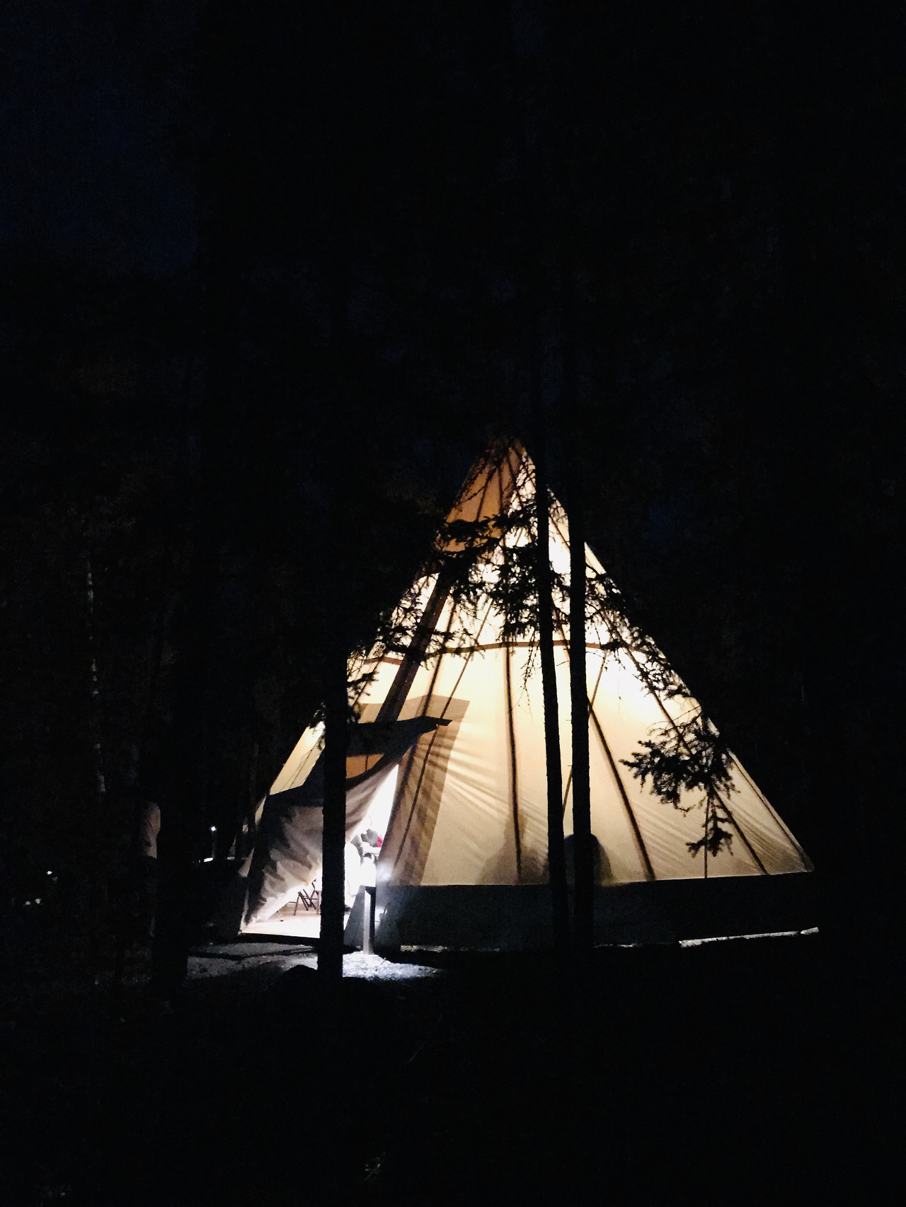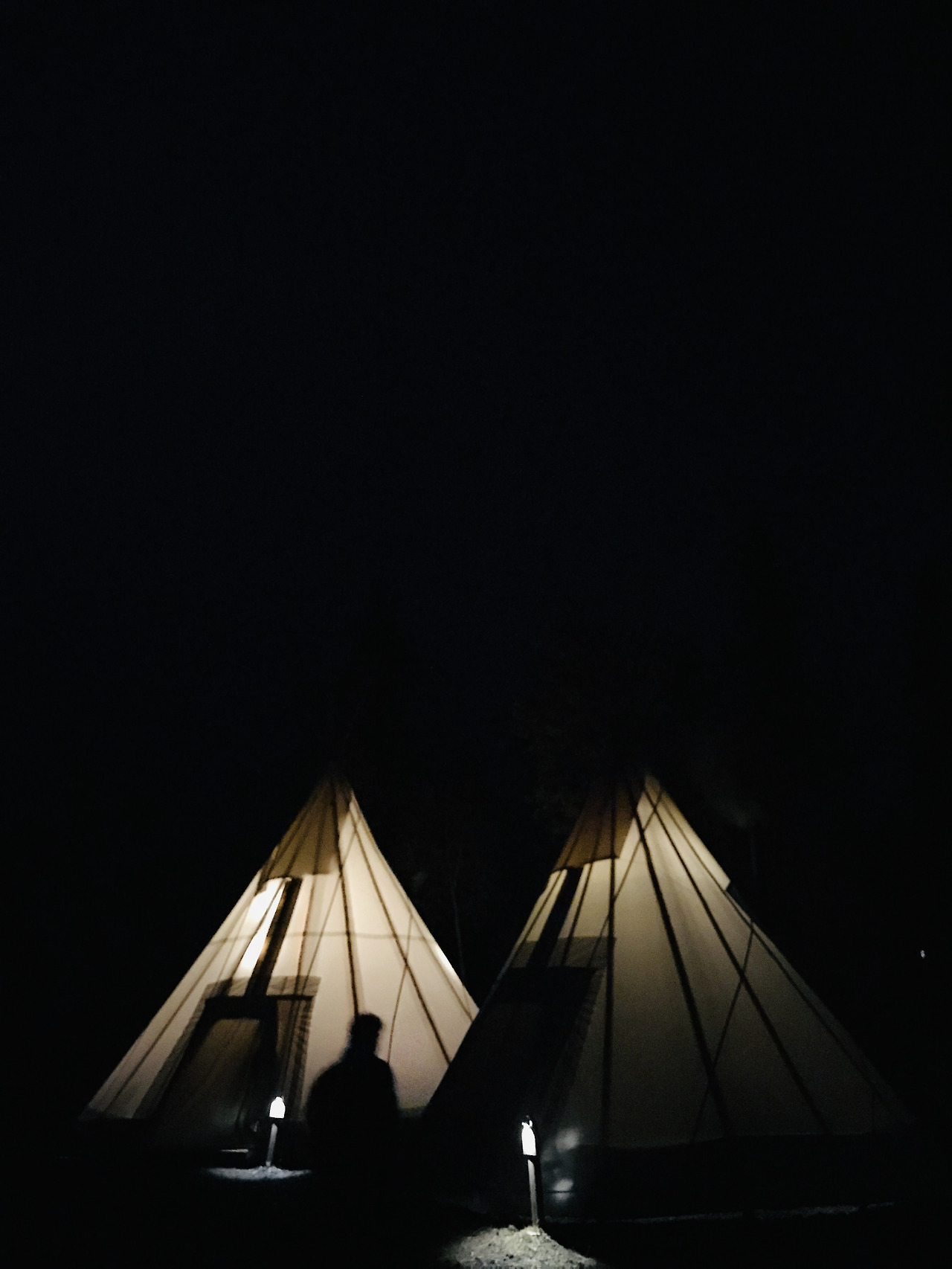 첫날, 오로라 빌리지를 예약했었다. 약간의 설렘을 가지고 근처 픽업 호텔에 가서 픽업차량을 탔다. 각 나라별로 팀을 나누어서 움직인다. 일본/한국/중국팀이 제일 많은 것 같았다. 오로라 빌리지는 티피 체험을 할 수 있고, 추우면 티피에서 잠시 쉴 수 있어서 좋은 반면, 오로라가 언제 어떻게 나타날지 모른다는 단점이 있다. 근데 이날 비가 오면서... 오로라 보기 실패! 티피 사진만 찍고 왔다.
