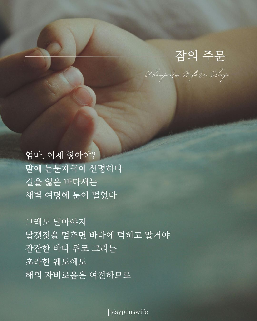 아이는 왜 잠이 들 때가 되어서야 이리도 예쁘고 사랑스러운지. 그리고 나는 왜 잠들기 전이되어서야 부끄러움을 아는지.