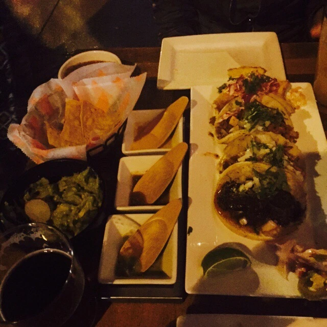 여러 메뉴가 있는데 4개의 타코를 맛볼 수 있는 메뉴인 4 tacos (17.95달러) 와 주문즉시 레몬즙을 넣어 바로 만들어주는 아보카드 샐러드인 과카몰레guacamole (8.95달러)를 시키고 음료는 멕시코 멕주인 modelo 흑맥주(6달러)와 moss(4달러)라고 하는 레몬에이드 같은 음료를 시켰다.