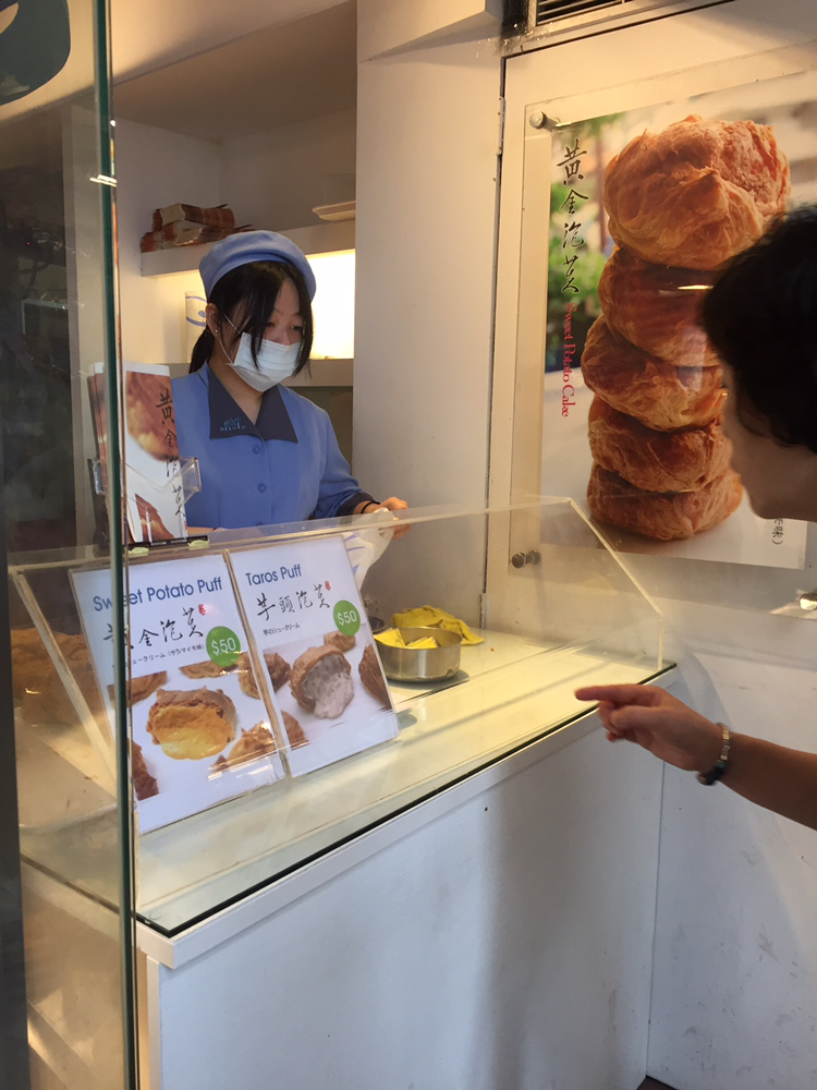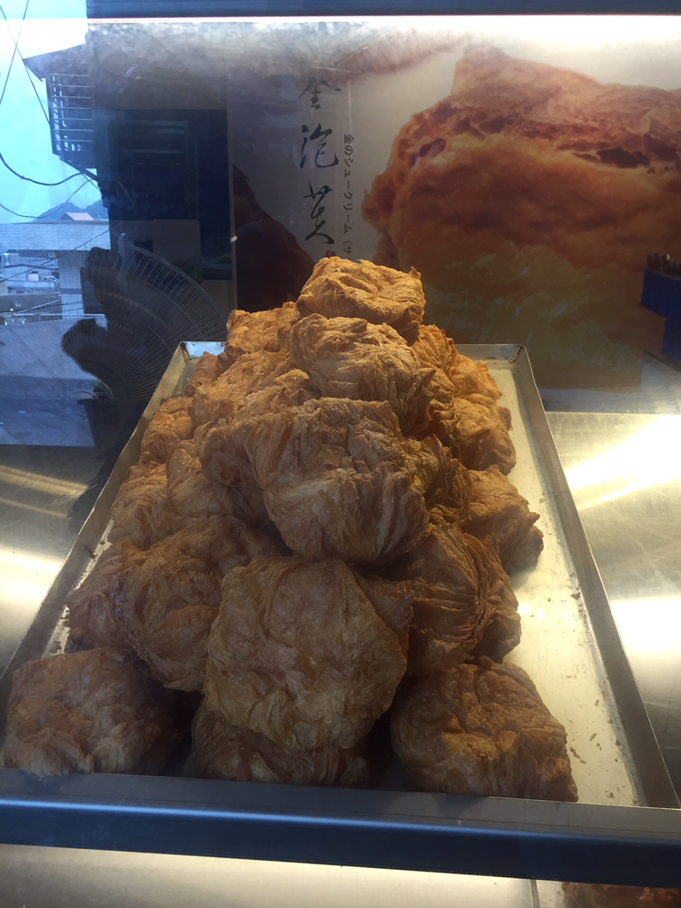 더 많이 사지 않은 것을 후회했던 유일한 길거리 음식은 바로 이, 타로 슈크림빵이었다. 타로가 들어가 있으니까 맛있을 것 같아서 타로 슈크림빵 하나, 고구마 슈크림빵 하나를 샀다. 진짜.. 진짜 맛있다. 바싹한 빵과 함께 사르르 녹는 타로 슈크림의 맛. 취두부 냄새 잔뜩 번지는 지우펀 시장분위기와는 조금 다른 느낌의 간식이지만, 슈크림 빵을 좋아한다면 놓치지 말 것!