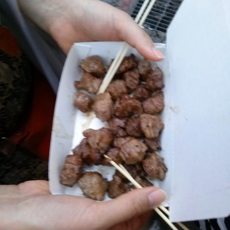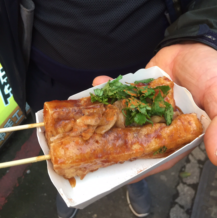 하고 생각하는 순간 역한 냄새가 쑤욱 올라온다. 윽. 그런데 뭐 어느 정도 잘 참을 수 있는 정도라고 할까. 손으로 코를 막고 꿀떡 한 번에 삼켰다. 그렇게 나는 내 인생 처음으로 취두부를 먹어보고야 말았다. 솔직히 정말 놀란 것은, 겉은 바싹한데 속은 연두부처럼 부드럽게 입에서 살살 녹는다는 점. 친구들과 한번쯤 사 먹어 보면 참 다양한 표정을 볼 수 있는 재밌는 음식이 될 것이다. 야시장 입구에서부터 취두부 냄새가 난다고 코를 틀어막게 되겠지만, 냄새보다 맛이 강하지 않다는 것을 기억하자. 역겨움을 잘 참으며, 겪어 본 적 없는 신비한 맛을 체험해보고 싶은 도전정신이 강한 사람이라면 감히 추천한다.