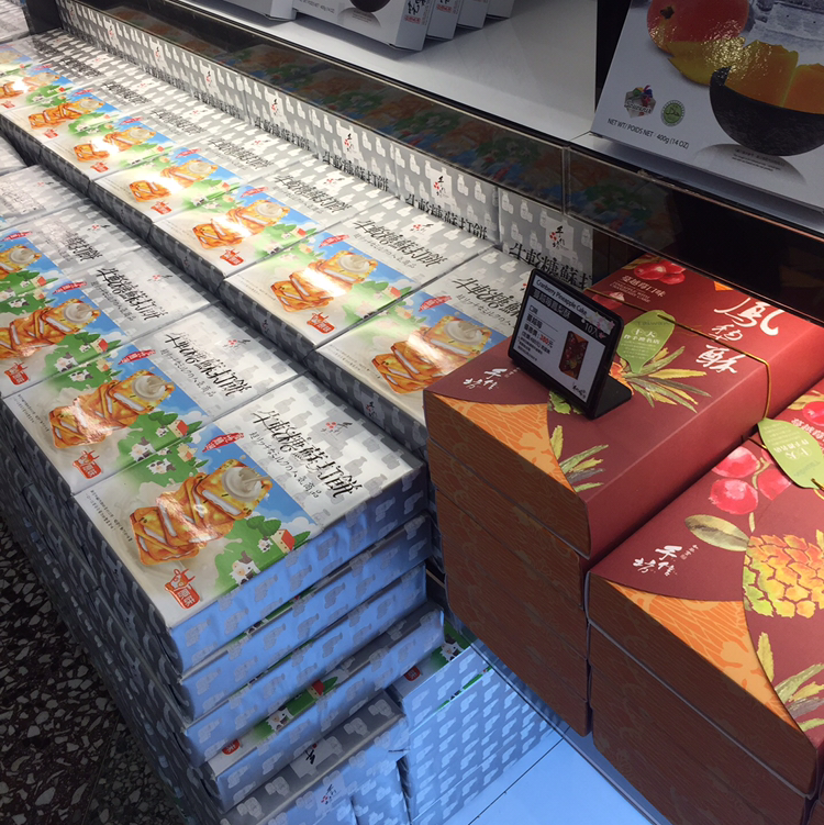 펑리수로 수신 방에서 나의 맛을 사로잡은 과자! 이것을 시식해보자! 쫀득한 캐러멜 같은 누가가 크래커 속에 들어있는데 야채크래커 맛이 살짝 나고, 졸깃 쫄깃 누가를 씹어먹는 식감도 재밌다. 지우펀에서 누가 크래커 몇 군데에서 시식해 봤는데 쫀득한 식감이 제대로 살아있는 것은 수신 방 누가 크래커였다. 무겁지 않아 들고 가기도 괜찮다.